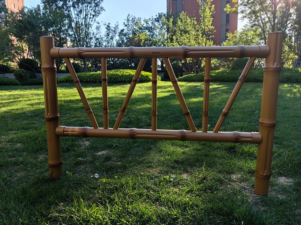 首先,公司的仿竹篱笆产品竹节明显逼真,做工严谨,结实耐用。采用叠加三角形的结构设计,铆钉固定,在提高强度的同时,还保证了篱笆安装便捷性。可根据客户要求确定款式、高度以及场地尺寸数据排尺加工,也可以根据客户图纸进行开发、设计生产。其不怕紫外线照射,不存在基材老化问题,使用寿命大大延长。而且护栏采用优质的阿克苏户外粉末做表面喷涂烤漆处理,在户外使用不褪色,不生锈、不开裂、结构好、强度高。