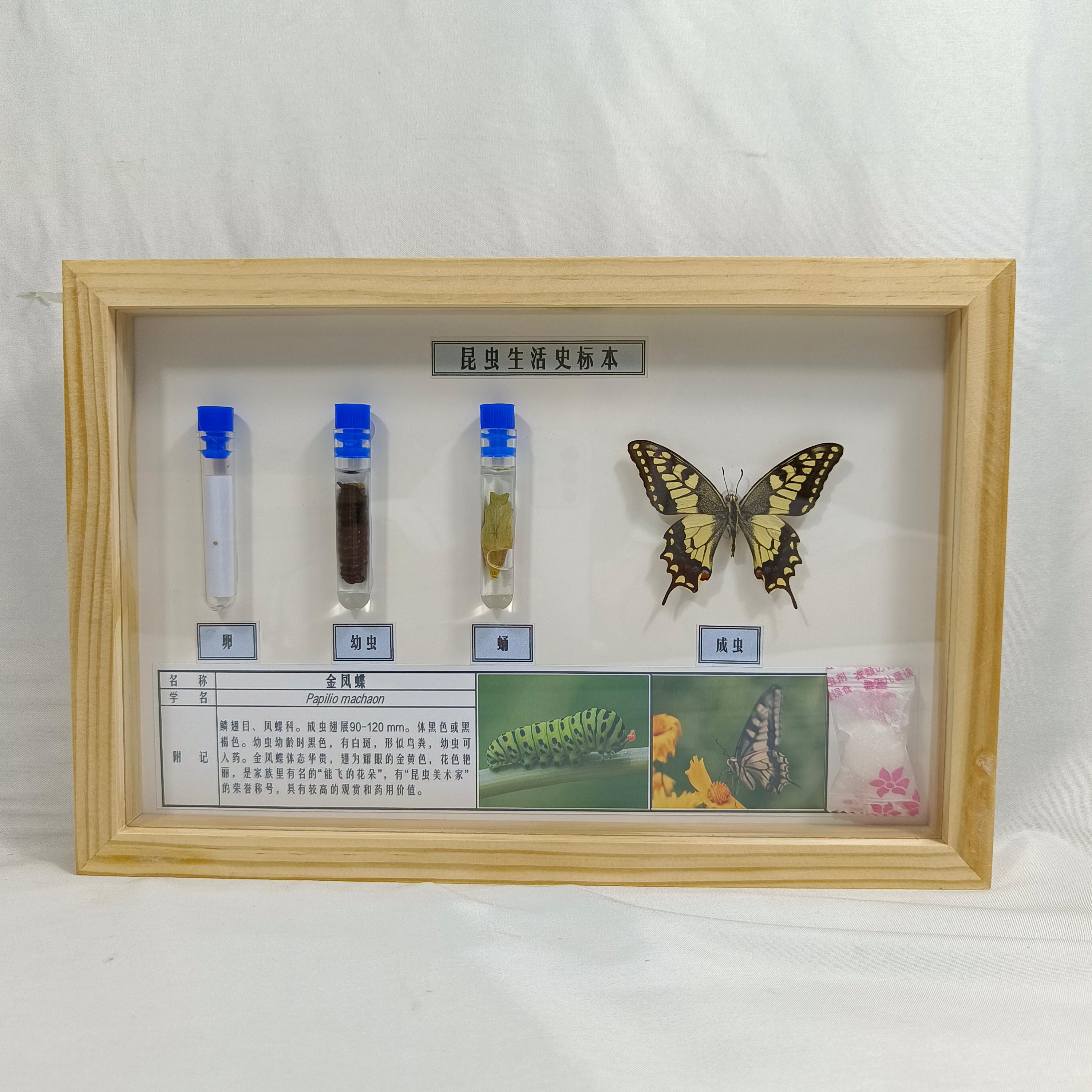 **蝴蝶生活史标本**则完整地展示了蝴蝶从卵、幼虫、蛹到成虫的整个生命过程。新乡市禾力教学设备有限公司作为蝴蝶生活史标本制造商,通过精心制作,将蝴蝶生活史的各个阶段清晰地呈现出来,为生物学教学和研究提供了生动的教材。