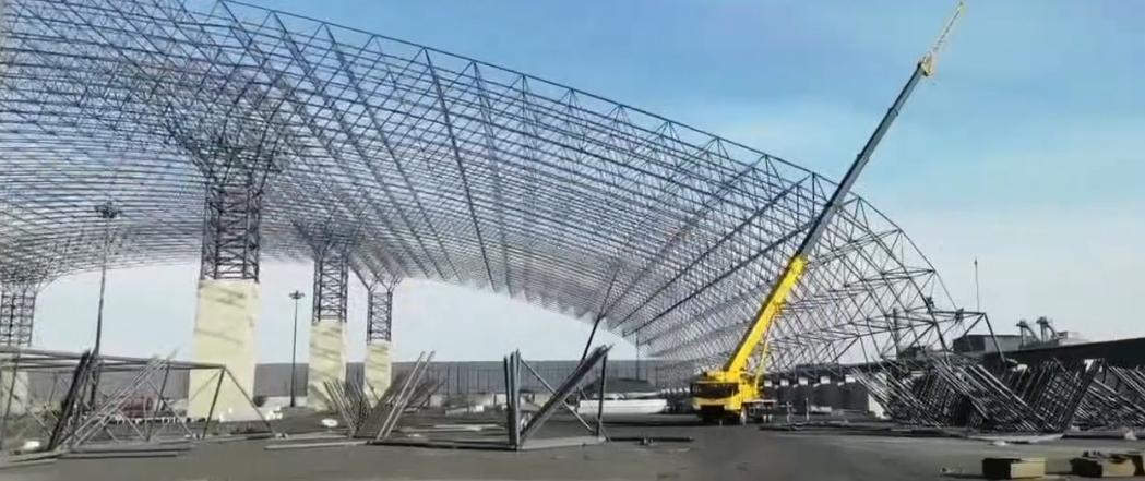 干煤棚网架是用于煤炭储存的专业网架产品。它具有密封性好、抗腐蚀能力强等特点。干煤棚网架可以有效防止煤炭的风吹雨淋,减少煤炭的损失和环境污染。其坚固的结构能够承受煤炭的重量和各种外力的作用,确保干煤棚的安全使用。