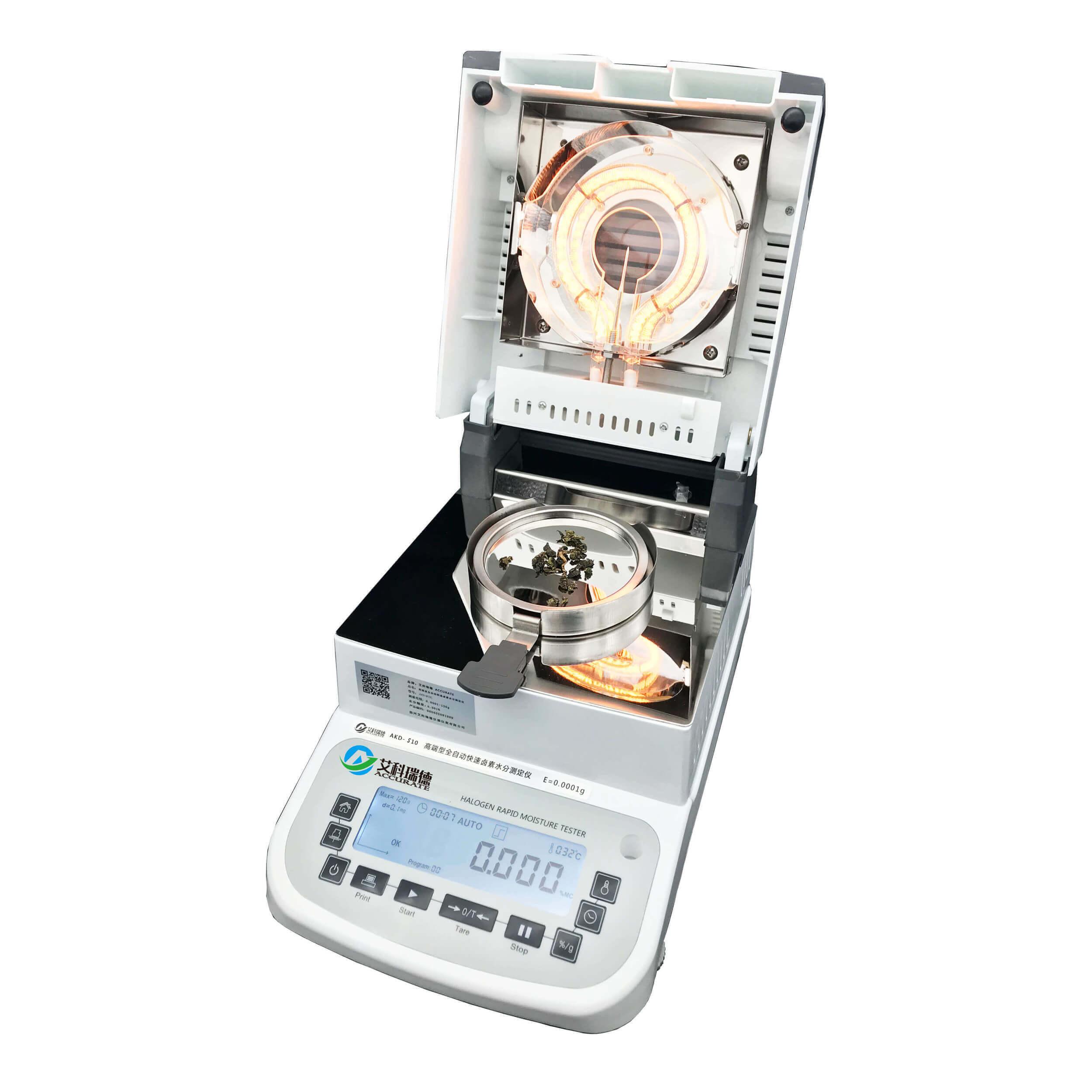 卤素水分供货商提供的卤素水分仪,采用卤素加热技术,能够均匀快速地加热样品,使水分快速蒸发,从而准确测量样品中的水分含量。这种仪器测量范围广,精度高,是许多实验室和企业进行水分检测的常用设备。