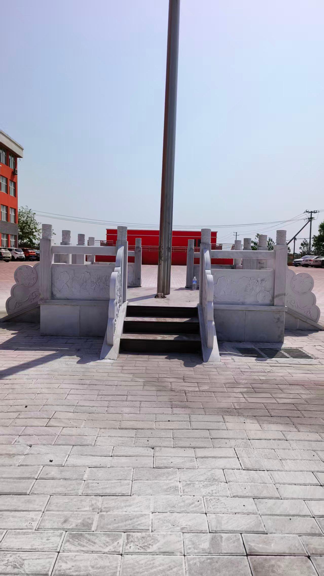 公司的升旗台汉白玉石栏杆也是一大特色产品。汉白玉质地洁白细腻,纹理优美,用其制作的石栏杆不仅美观大方,而且具有很高的艺术价值。石栏杆的设计注重细节,雕刻线条流畅、造型饱满、比例精准,棱角分明,细节清晰,与升旗台相得益彰,为升旗台增添了一份精致和高雅。