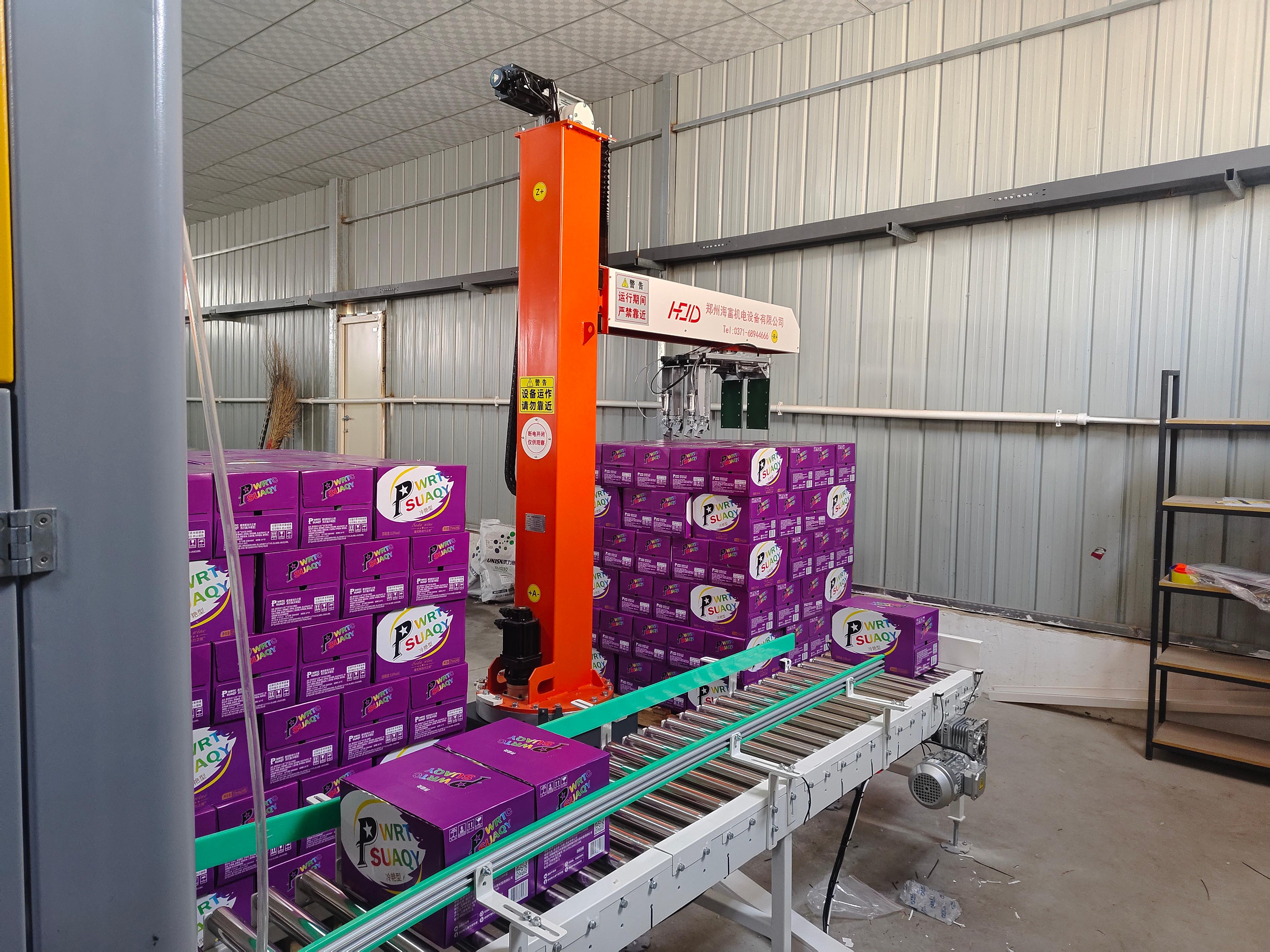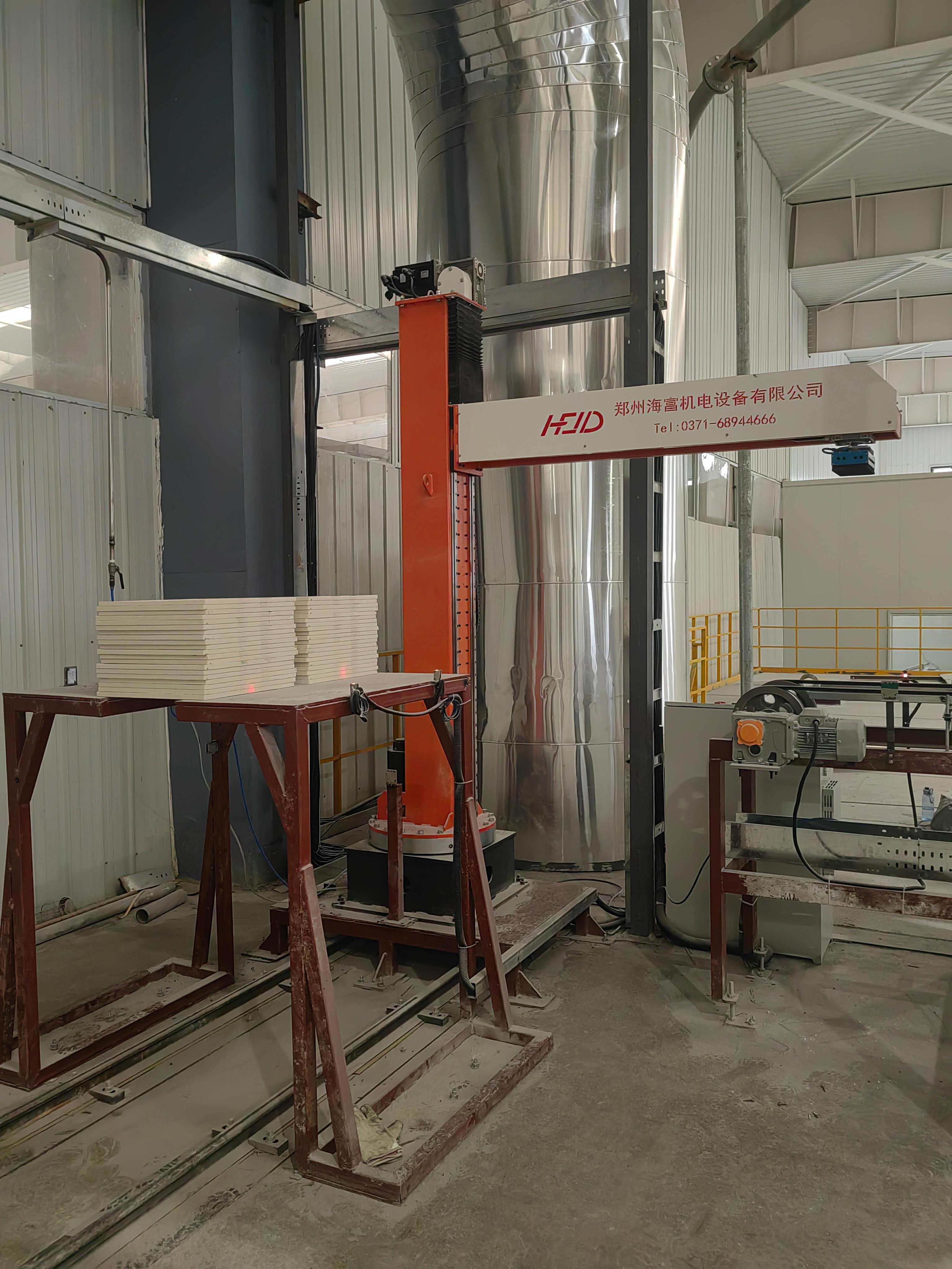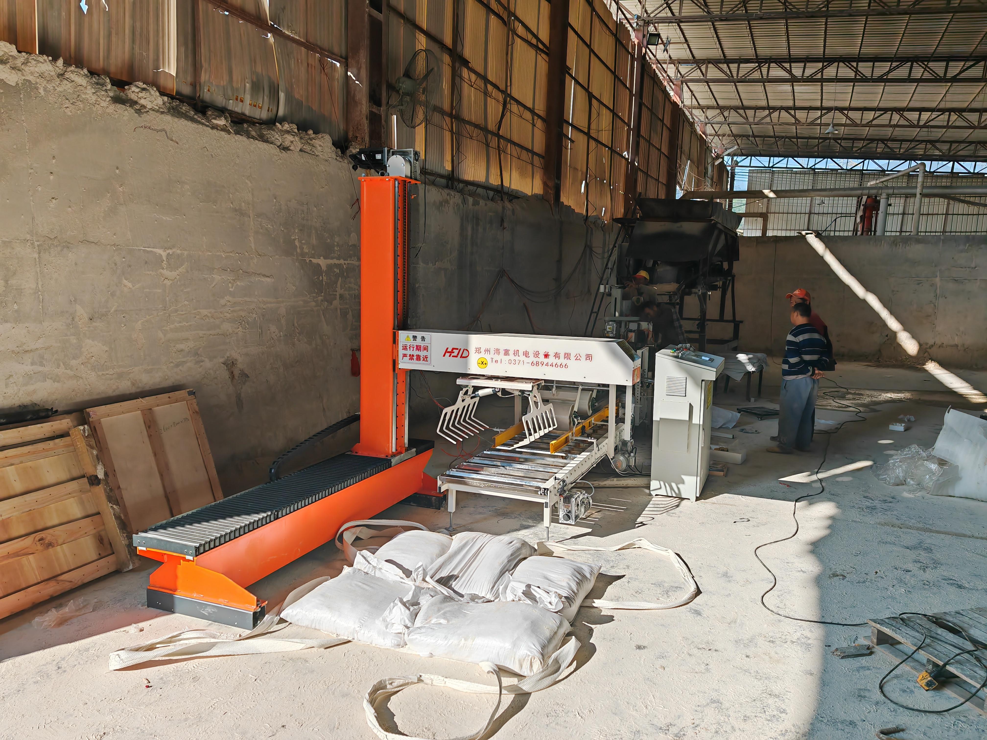 码垛机器人也是公司的重点产品之一。HFMR - 180 立柱旋转机器人底部基座 320°旋转,并且支持双生产线、双托盘工位。这使得它在码垛作业中具有更高的灵活性和效率。在建材行业,对于干粉砂浆、腻子粉等产品的码垛工作,该码垛机器人能够快速、准确地完成任务,将产品整齐地码放,便于存储和运输。