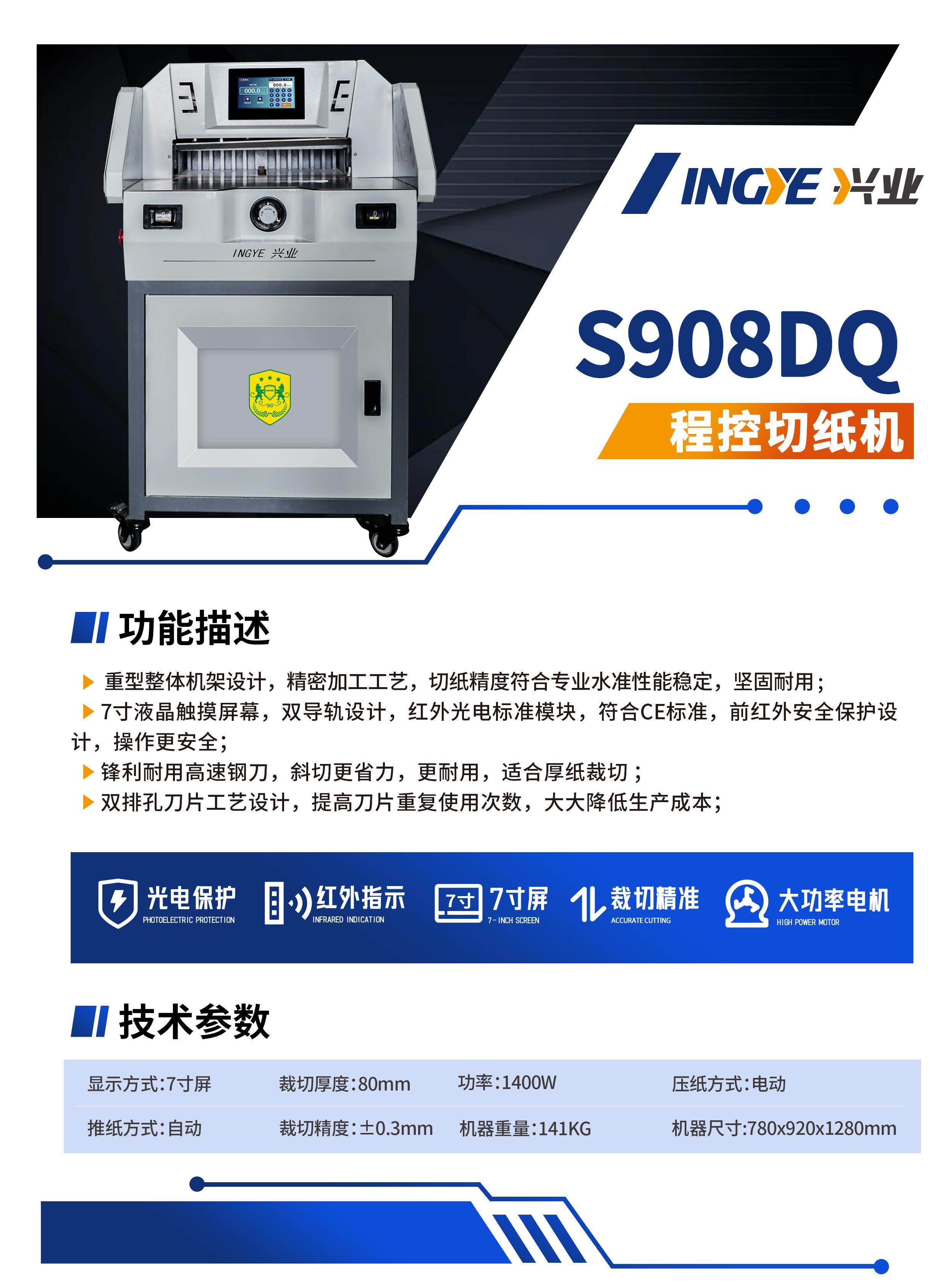 高质量切纸机是北京延中兴业科技有限公司的主打产品之一。这款切纸机采用了先进的切割技术,能够实现高精度的切割,切割后的纸张边缘整齐、光滑,误差极小。它适用于各种纸张材料,无论是普通的打印纸,还是较厚的卡纸、瓦楞纸等,都能轻松应对。其稳定的性能和可靠的质量,使得它在广告制作、印刷出版等行业中得到了广泛的应用。