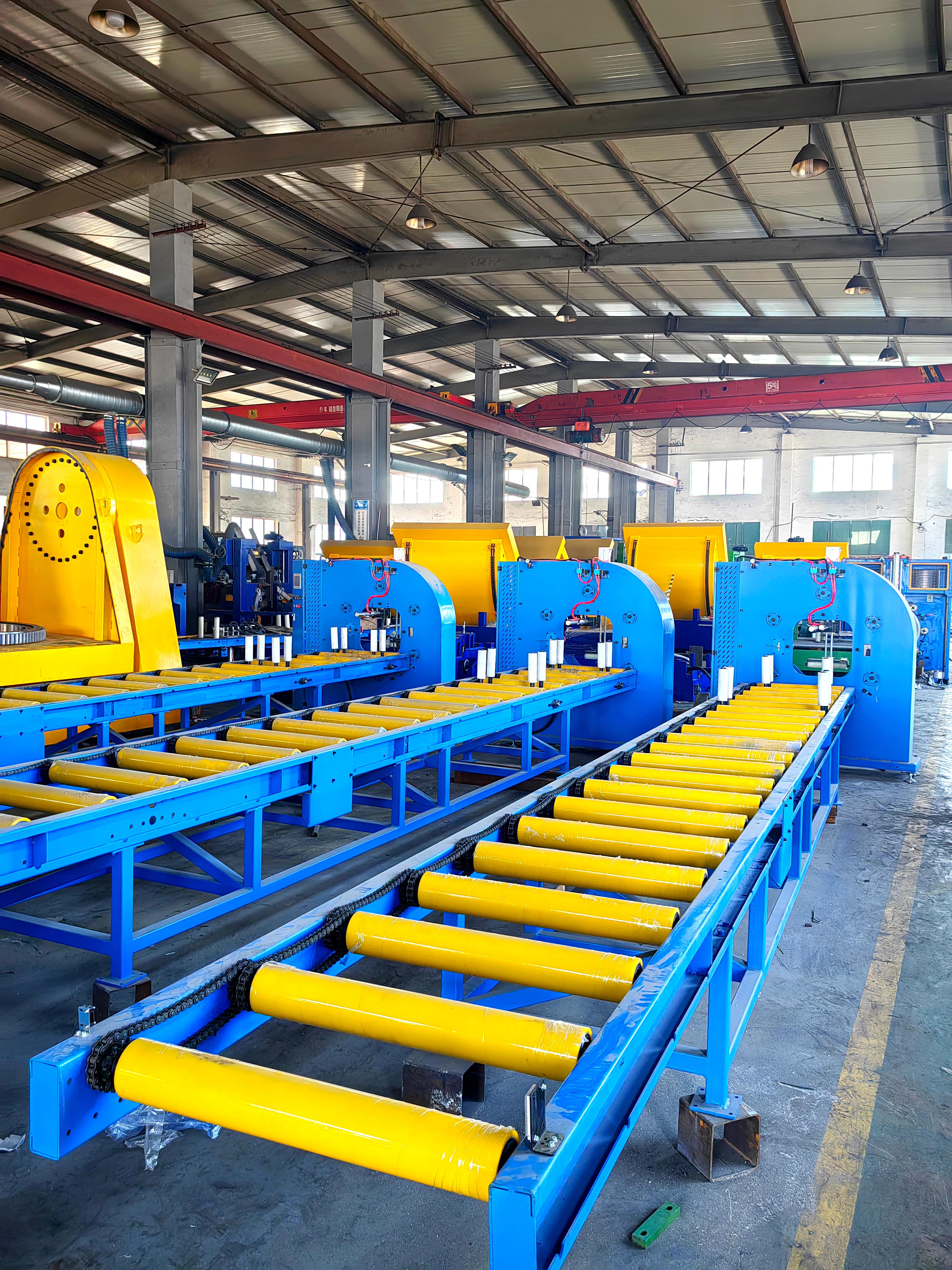 **钢带缠绕机**:主要用于对钢带等金属材料进行缠绕。它具有较高的强度和稳定性,能够承受较大的张力。钢带缠绕机可以将钢带紧密地缠绕在一起,方便储存和运输。在钢铁、机械制造等行业,钢带缠绕机是不可或缺的包装设备。
