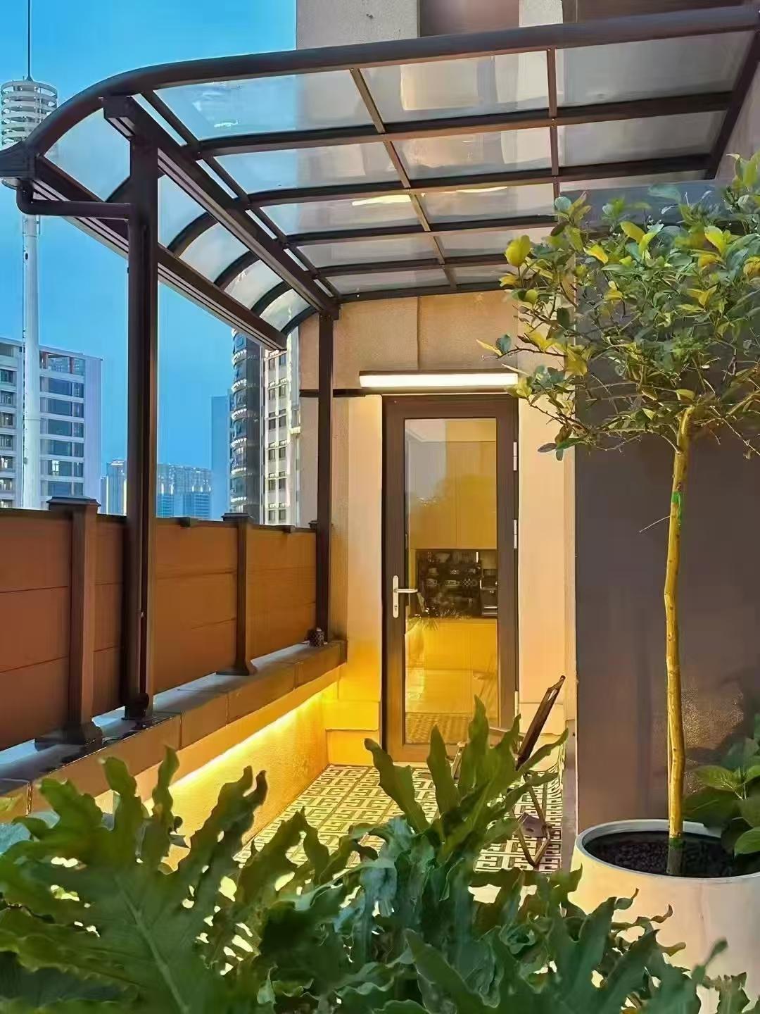 室外铝合金露台雨棚适用于各种室外露台,无论是家庭的小院露台,还是商业场所的户外露台,都能为其提供良好的保护。**铝合金露台雨棚定制更是满足了一些对品质和设计有较高要求的客户。这种雨棚在材质和工艺上更加精细,能够与**的建筑风格相匹配。阳台铝合金雨棚也是公司的主打产品之一,它可以根据阳台的尺寸和形状进行定制,安装方便,使用效果好。