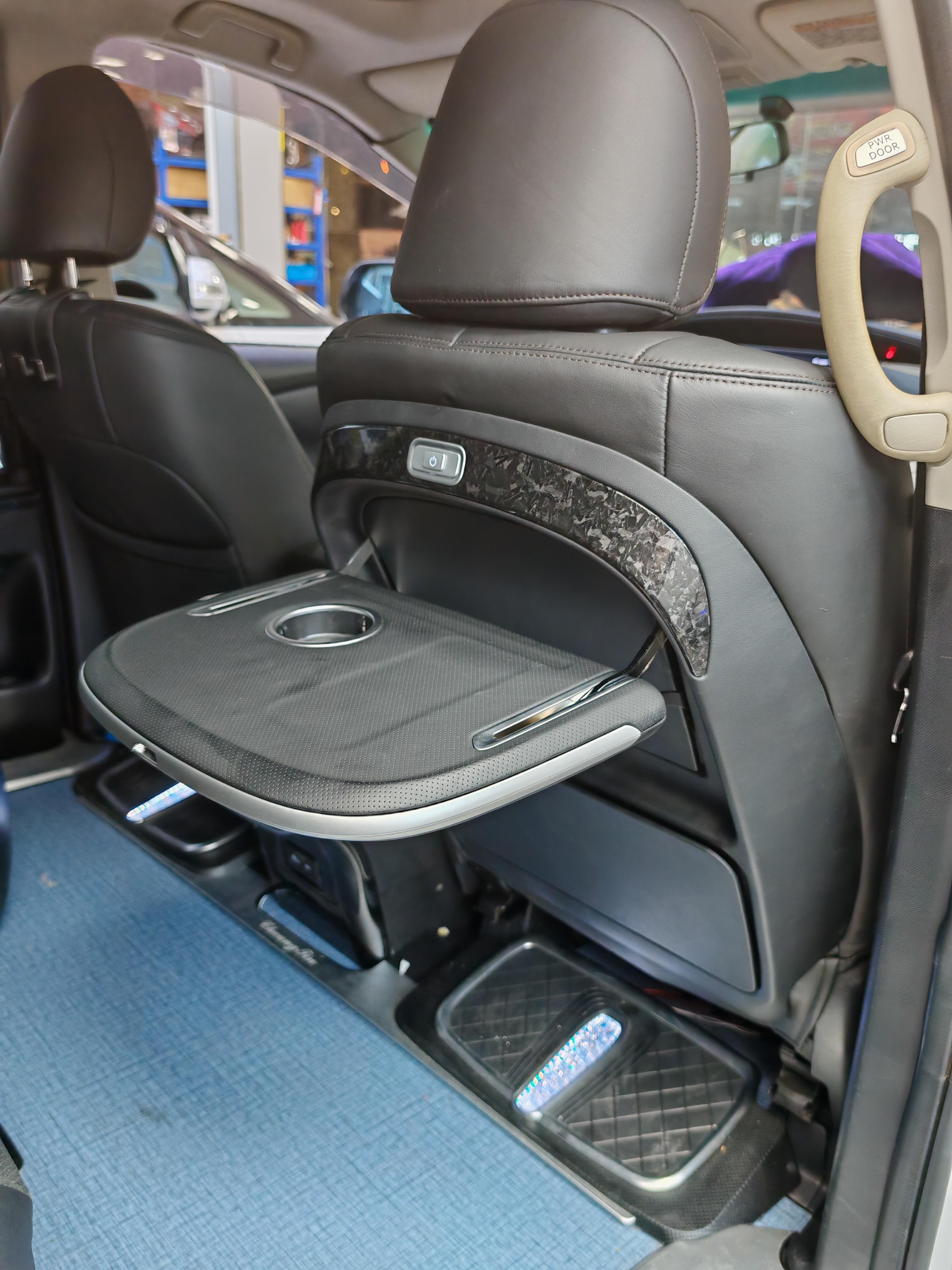 汽车后排电动小桌板为后排乘客提供了便利的桌面空间,可以放置物品、用餐、办公等。其设计合理,安装后与汽车内饰**融合,不占用过多空间。