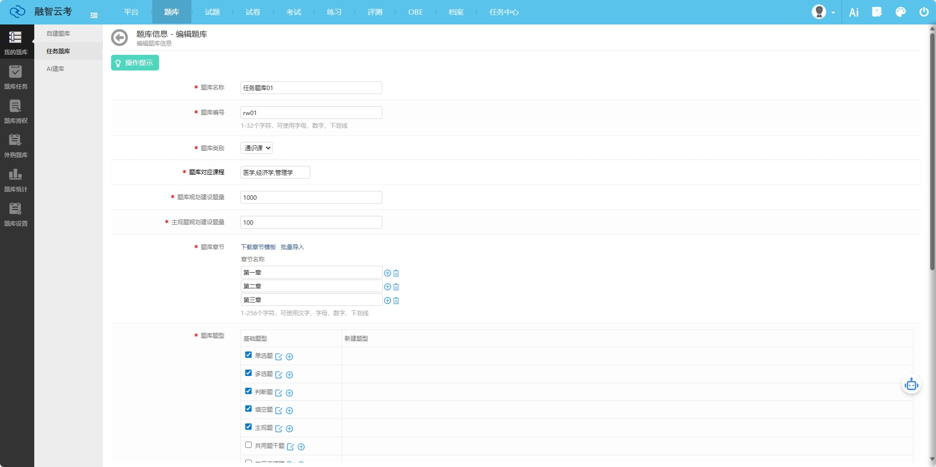 在题库资源方面,'融智云考'免费提供1400门近300万道试题供用户参考,且以每年20%的速度不断更新。这为高校老师提供了丰富的试题选择,能够及时获取*新的试题资料,保证了考试内容的新颖性和针对性,对于辽宁高数题库、长春会计题库、沈阳大学英语题库、吉林医学题库等各类题库的建设和更新都有很大的帮助。