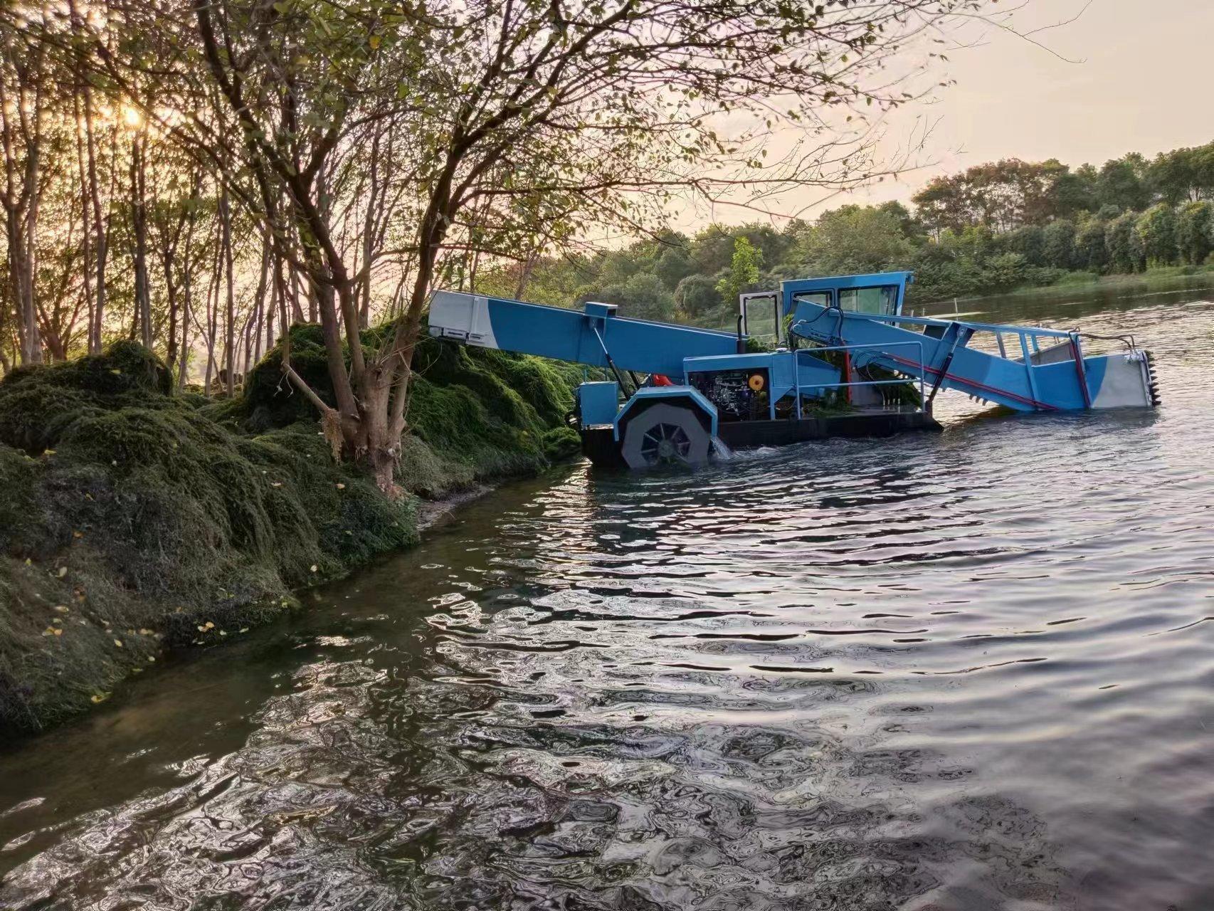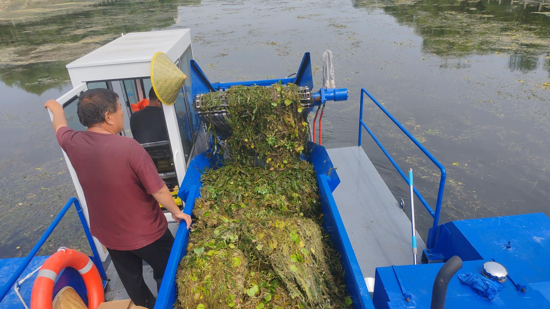 水草收割船则主要用于清理水域中的水草。水草过度生长会影响水域的通航、水质和水生生物的生存。水草收割船可以精准地切割水草,并将其收集起来,保持水域的清洁和畅通。它具有切割精度高、收集能力强的特点,能够有效地解决水草生长带来的问题。
