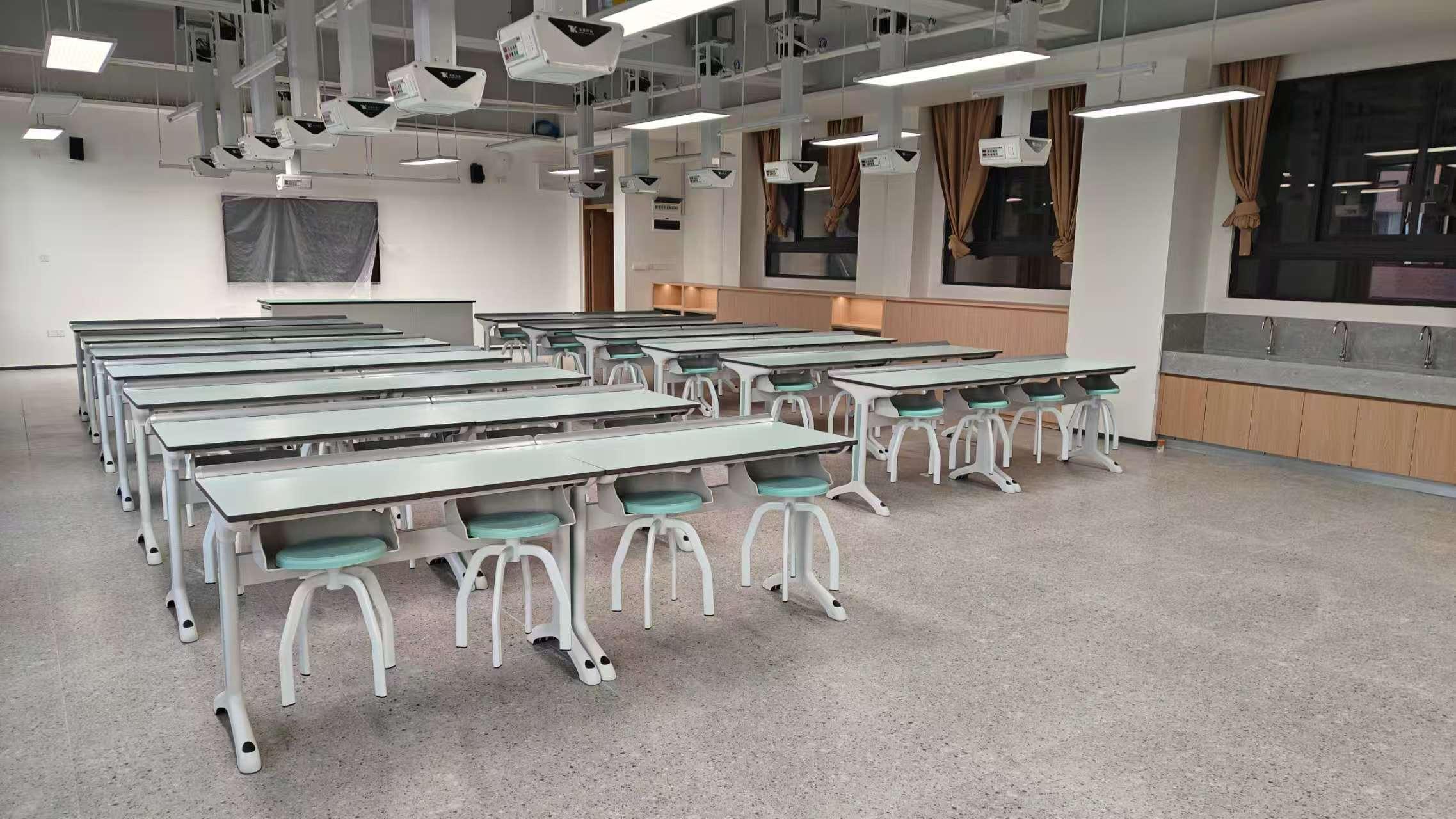其核心业务与产品体系主要包括以下几个方面。首先是理化生智能实验室(核心硬件),覆盖E/H/T/A/L五大系列实验室产品,搭配专用设备,能满足不同学科与场景需求。核心实验桌 / 台方面,E系列采用一体式钢架,12.7mm实芯理化板,耐酸碱防火,适合对实验环境要求较高的场景;H系列为铝合金框架,轻便灵活,预留收纳与电源位,方便实验室的布置和使用;T系列是全钢结构,防腐耐用,适配常规教学;A系列采用铝框架 + 陶瓷板,符合人体工学,收纳规整;L系列是铝框架 + E0级生态板,专为化学实验室设计。顶装塔吊系统中,E系列一体式摇臂塔吊风水一体、有触控屏、折叠省空间;H系列塔吊集风水电气网络于一体,多工位、可升降;A系列物理绳索吊塔绳索驱动、全域移动、低噪适配精密实验。配套智能设备有智慧教师升降讲台,采用全钢 + 理化板,集成显示与水槽;物联智控系统可通过APP远程控制、进行环境监测和设备管理;智净污水处理单次处理1吨,达标GB8978 - 1996三级排放;智净废气处理采用活性炭吸附,净化率>99%;危化品管理系统可智能监测、有身份锁、声光报警、全生命周期管控;一体化移动教学推车具备双摄、无线麦、多通道录制、一键直播功能。