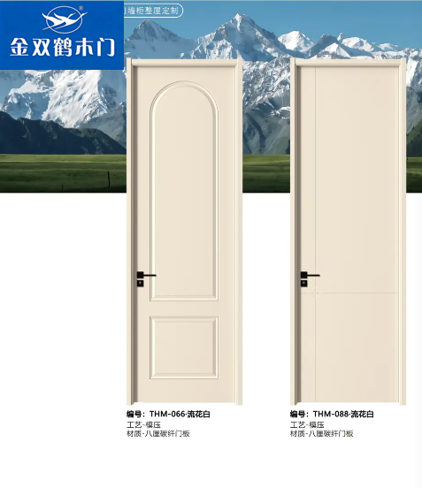 在产品特色方面,为了保持金双鹤木门品牌的特色,长期坚持人工雕花,人工打磨,手工调漆、手工调色等等。这些高技术的人工精华,创造出了金双鹤木门的艺术品特色,努力打造手工工艺,精雕细磨,融入万家好心情成就“金双鹤木门”特色——金双鹤烤漆实木门。
