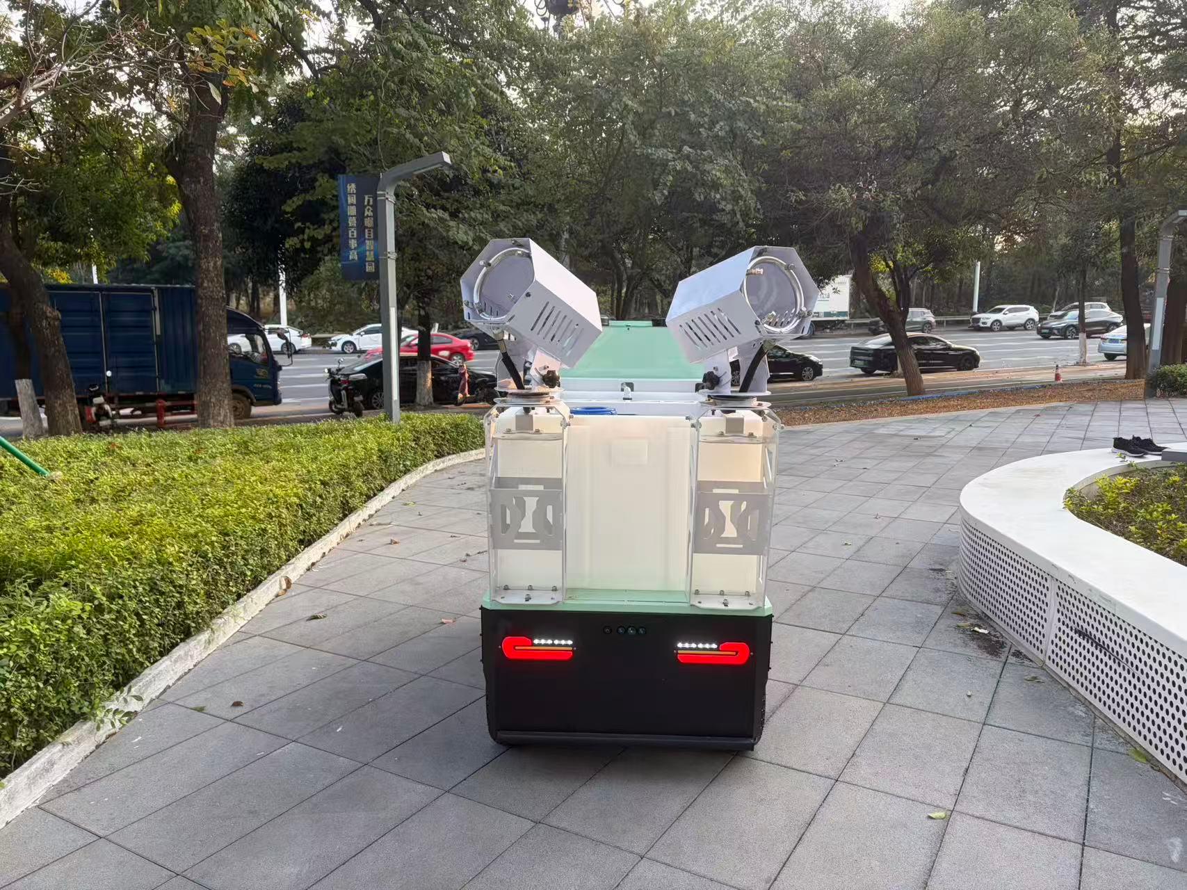 自动消杀车产品适用于城市街道、公共场所等大面积的消杀作业。它可以按照预设的路线自动行驶,对环境进行全面的消杀。自动消杀车配备了先进的喷雾系统,能够将消毒剂均匀地喷洒在空气中和地面上,有效杀灭细菌和病毒,保障公共卫生安全。