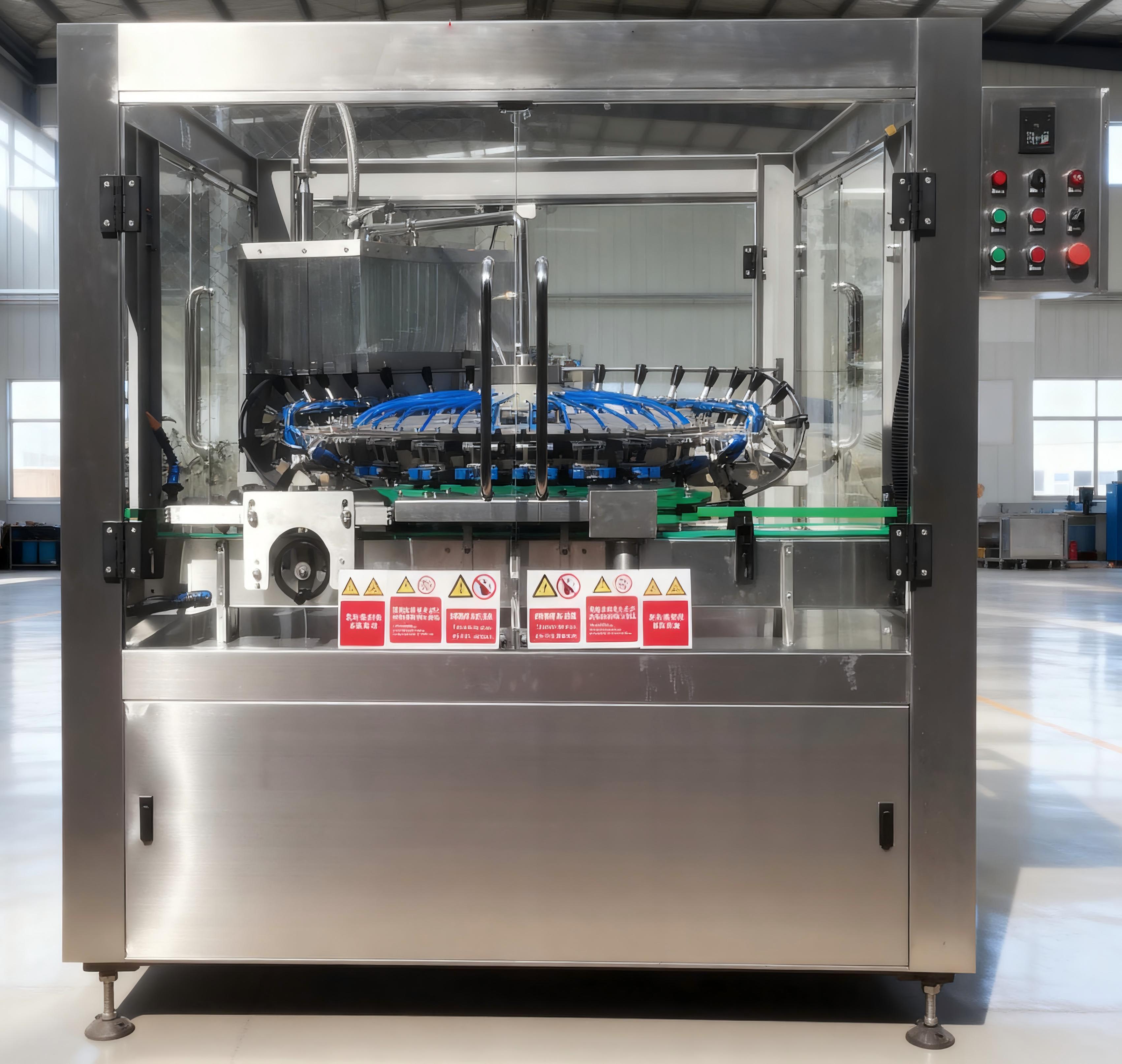 除了洗瓶机,公司还生产多种类型的灌装机。水剂类灌装机包括白酒灌装机、红酒灌装机、葡萄酒灌装机、黄酒灌装机、果酒灌装机、大桶水灌装机等,这些灌装机能够精准地将各种水剂液体灌装到相应的容器中,保证灌装的精度和效率。粘稠液体灌装机如机油润滑油灌装机、香油灌装机、酱油灌装机、醋灌装机、食用油灌装机、洗衣液灌装机、洗洁精灌装机、蜂蜜灌装机、酱类灌装机等,针对粘稠液体的特性进行设计,解决了粘稠液体灌装过程中的难题。易起沫类液体灌装机,像玻璃水灌装机、调味品灌装机、洗涤品灌装机、饮料灌装机等,能够有效控制液体起沫,确保灌装的顺利进行。腐蚀性液体灌装机,如农药化肥灌装机、化工品灌装机、84灌装机等,采用特殊的材质和工艺,能够适应腐蚀性液体的灌装需求。