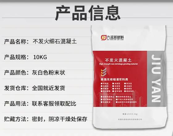 天津九延新材料科技有限公司的这些主营产品,在市场上得到了广泛的认可和应用。许多建筑工程都选择了该公司的不发火混凝土及砂浆产品,以满足工程的安全和质量要求。例如,在一些大型工厂的建设中,使用了天津九延新材料科技有限公司的不发火混凝土砂浆和不发火细石混凝土,使得工厂的地面更加安全可靠,为生产提供了良好的环境。