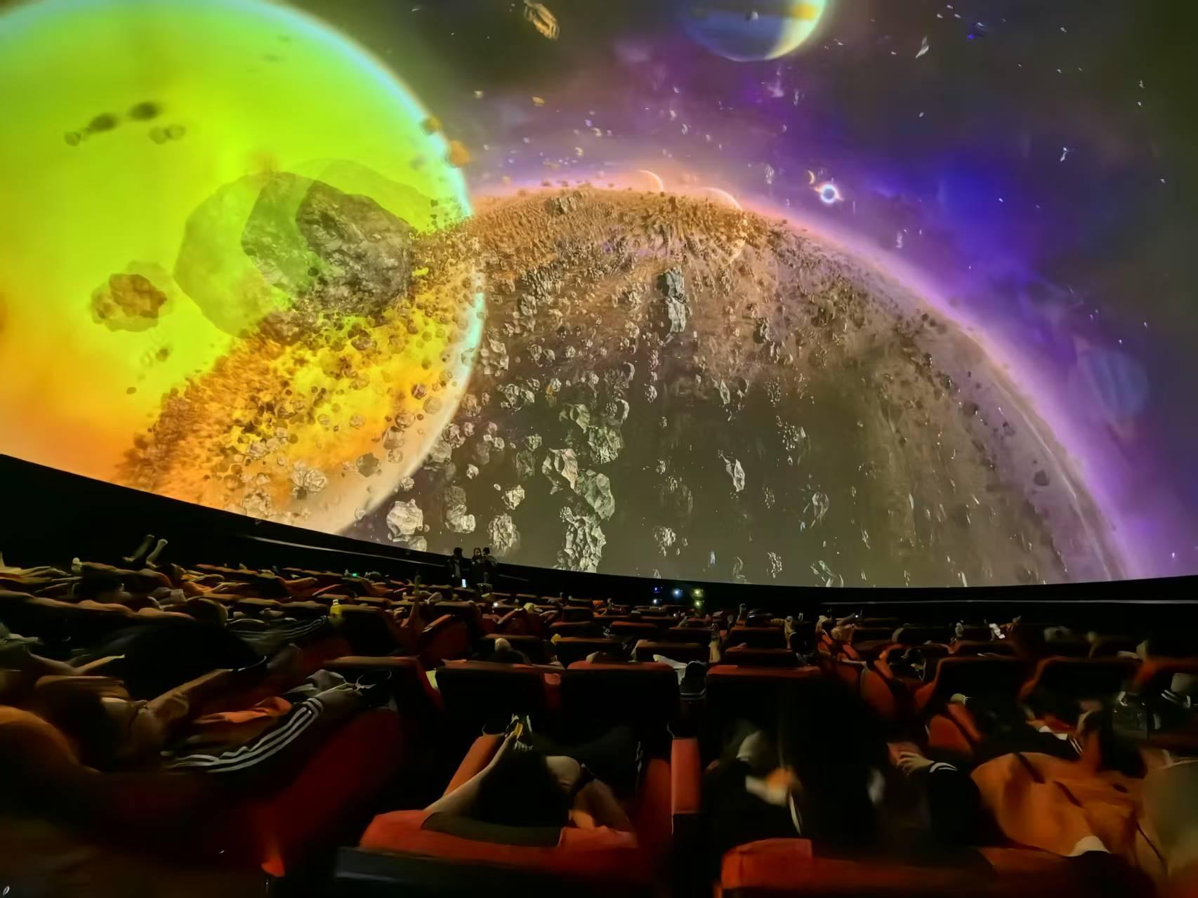球幕影院容量达 300 + 人,采用全沉浸式视觉覆盖形式,将观众视角无边际覆盖,裸眼 3D 效果,开启全景沉浸式的神奇体验。动感影院载体容量为 16–24 人 / 单舱,运动同步精度高,座椅动作与影片内容精准匹配,实现飞行等动态场景还原。影片定制方面,创意设计与影片制作团队传承自水晶石及万达文旅院,曾参与夏季奥运会、冬季奥运会等多项赛事项目,以及上海乐高、恒大海花岛等多个重点文旅项目。舞台演艺则是全息剧场结合传统的舞台演艺,通过大量光影内容的合理应用,大量的减少了演员的使用数量,有效地控制了运营的成本费用。