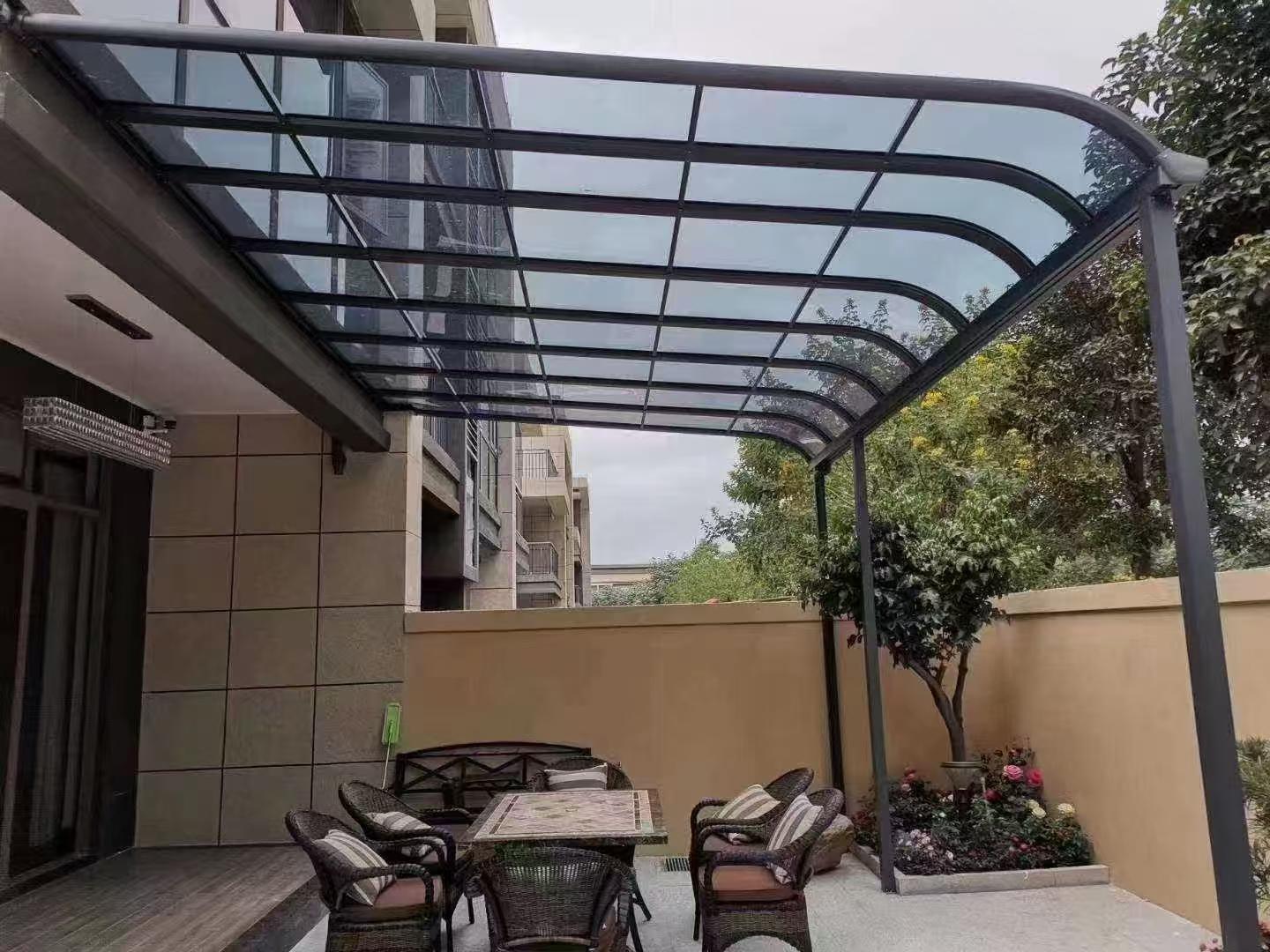 别墅铝合金遮阳棚:别墅通常拥有较大的户外空间,铝合金遮阳棚不仅能为别墅增添美观,还能提供舒适的户外休闲环境。无论是举办户外派对还是日常休息,遮阳棚都能提供一个遮阳避雨的好场所。其坚固的结构和美观的设计与别墅的整体风格相融合,提升别墅的整体品质。
