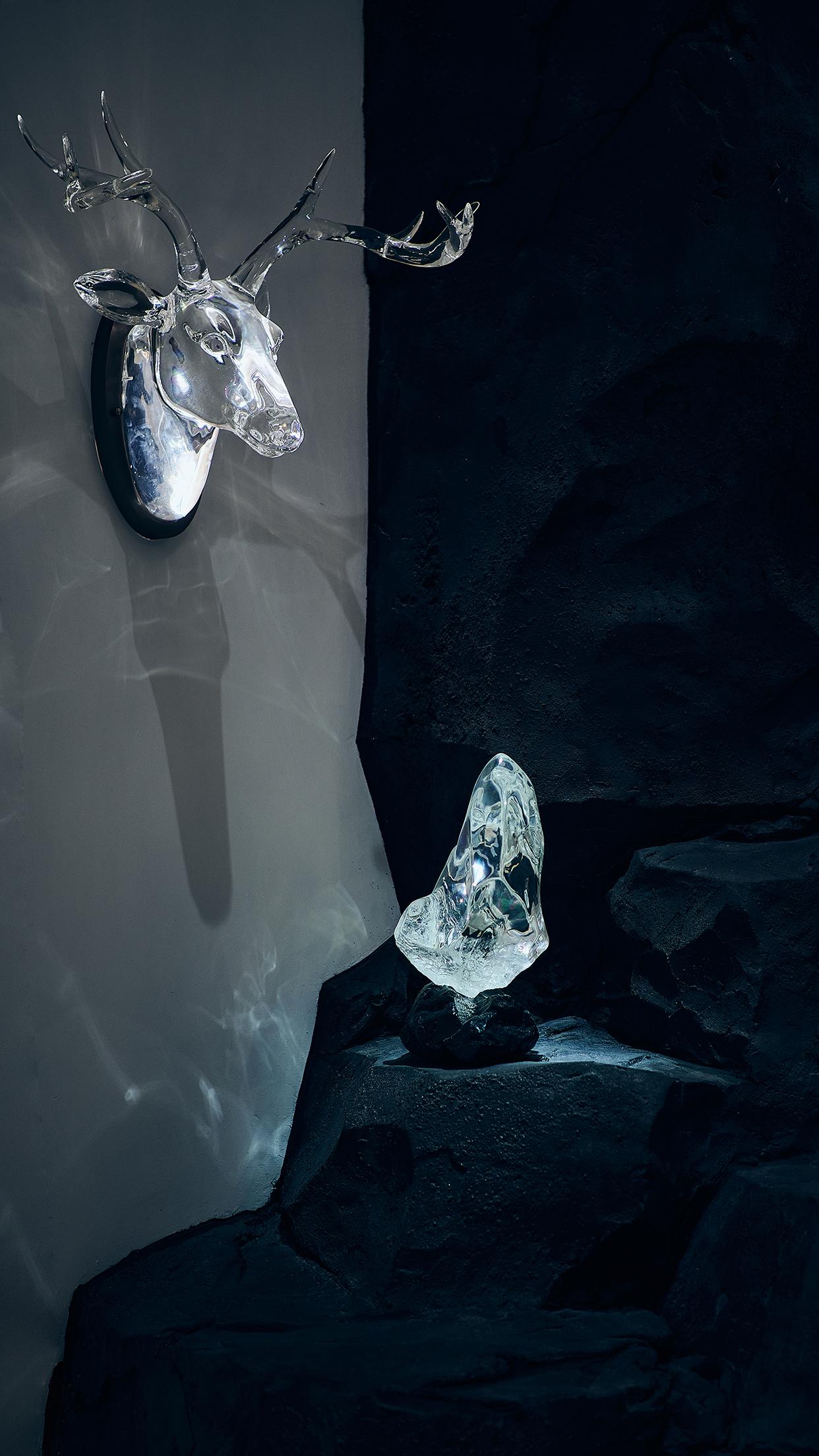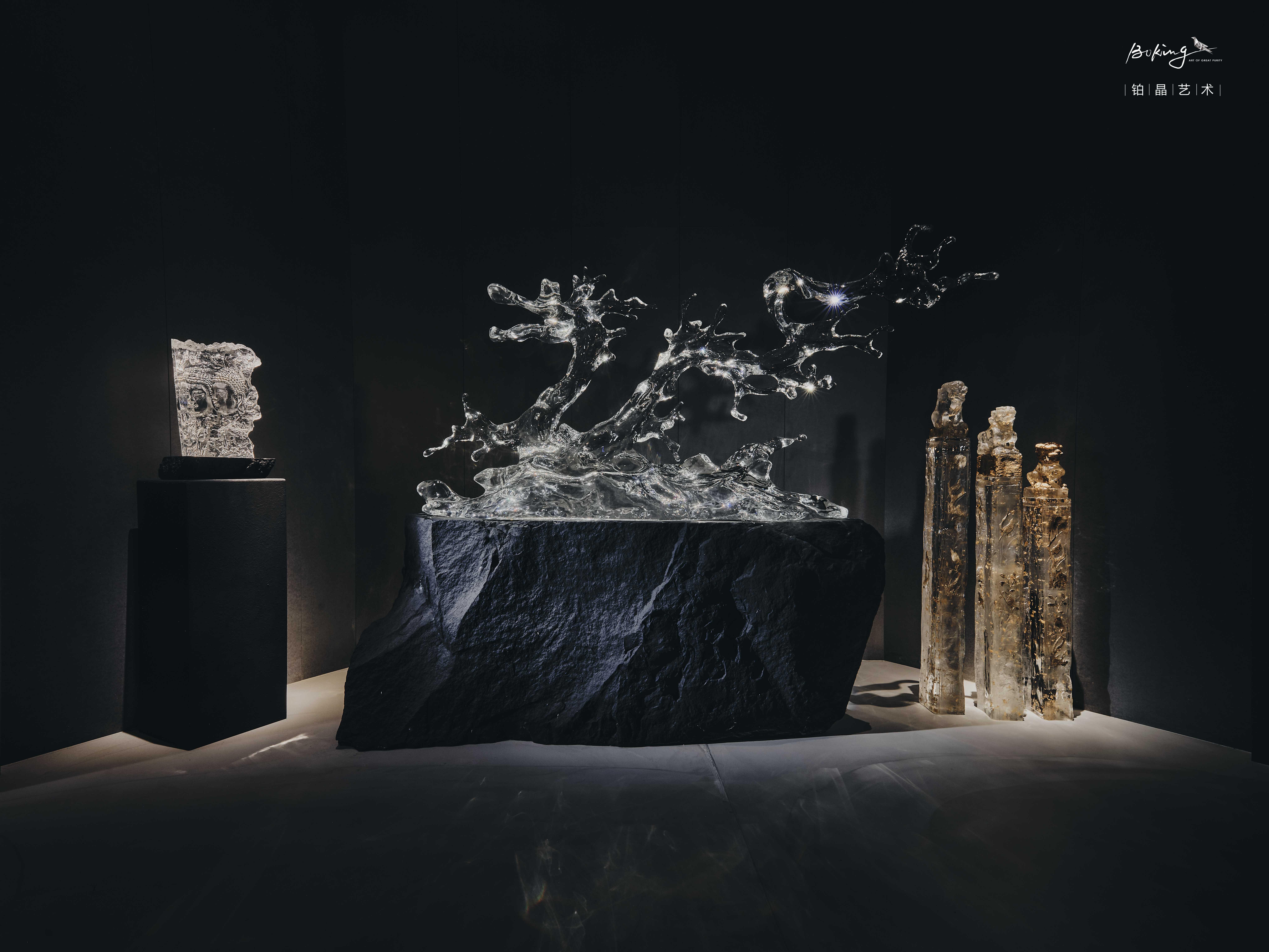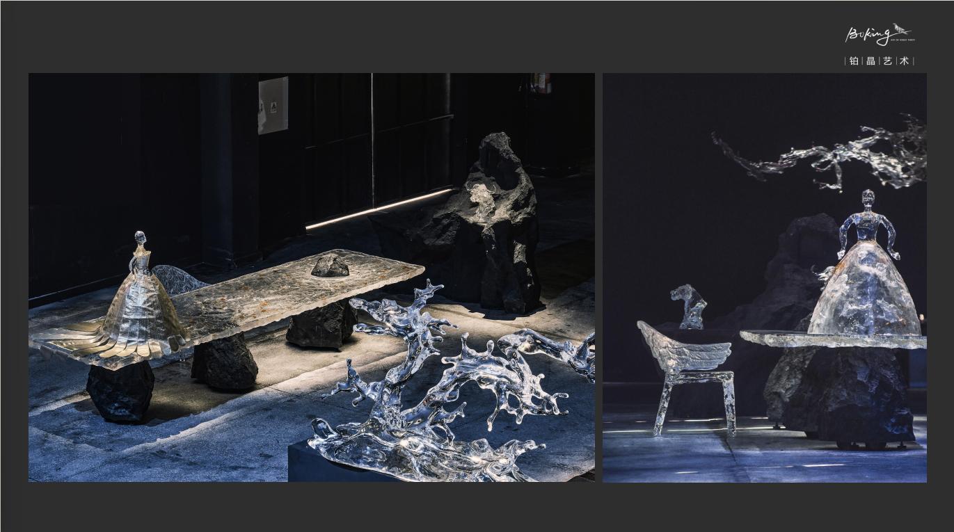 铂晶艺术以水晶重构东方美学,创作了太湖石系列,上善若水系列两大主要艺术作品系列。同时,通过对艺术作品的演绎,开发出一系列具有使用功能的艺术品,如网红作品《瑞水之镜》,《水隐》(水滴椅),《玄液》躺椅,《秘漩》茶桌,深受设计师及对生活美学有较高追求人士的喜爱。铂晶艺术的艺术家居的成功,源于创始人吴代杰对艺术与设计的边界的探索,也形成了透明艺术家居这一新领域。