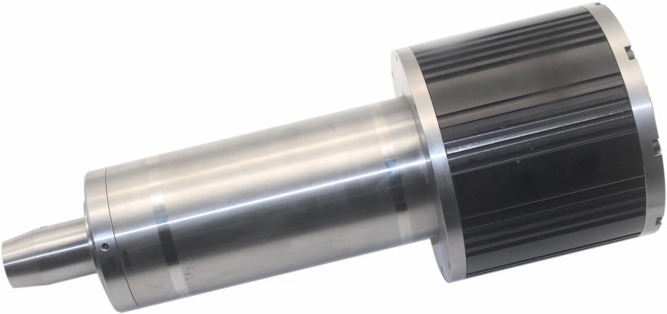 永磁同步电主轴:采用自主研发技术,具有高转速、高精度、低振动特性。功率覆盖500W到100Kw,从电机类型有异步电机和永磁同步电机,润滑方式有油脂润滑和油气润滑,转速能做到15万转。广泛应用于雕刻、雕铣、加工中心及机器人打磨等领域。