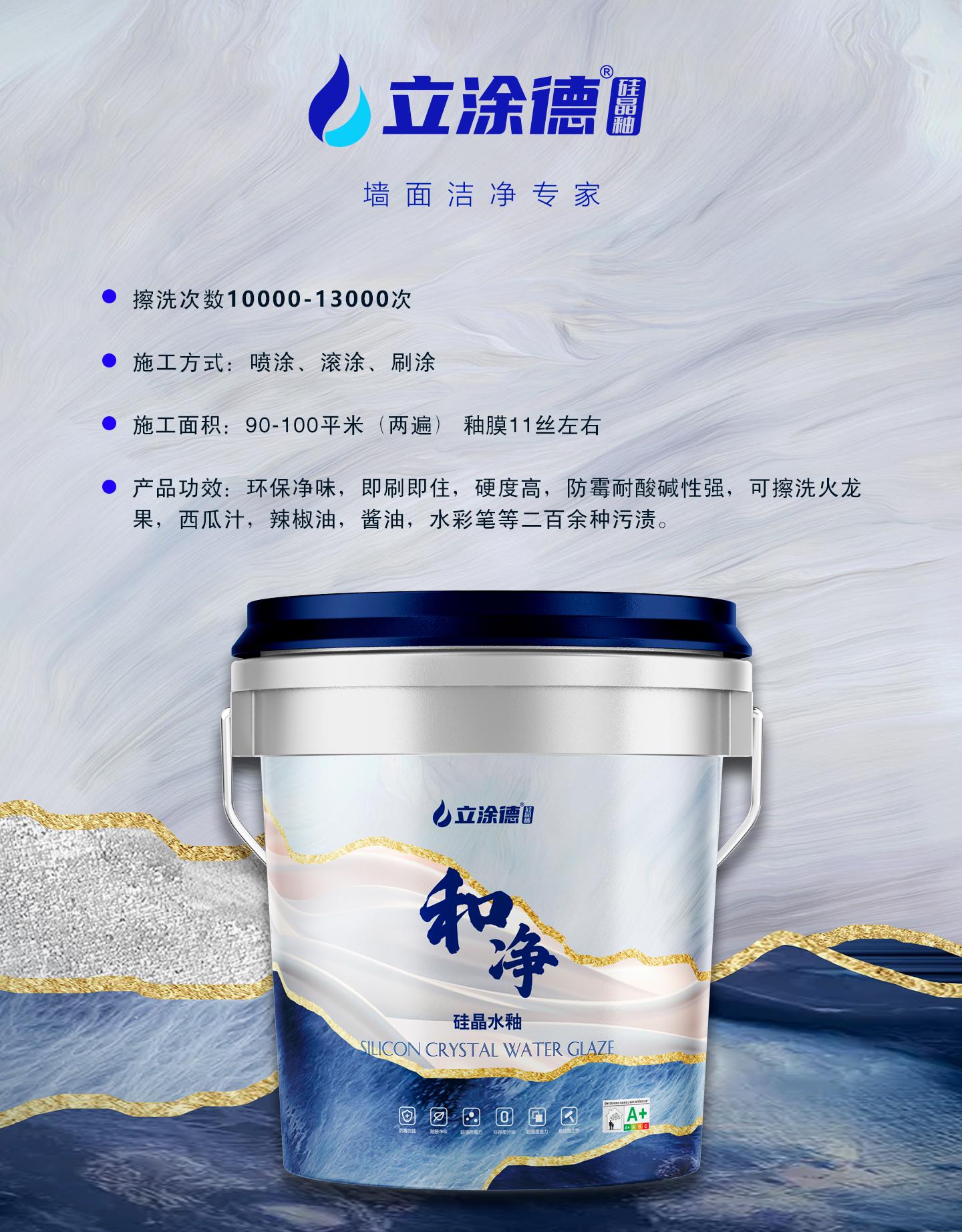 立涂德硅晶釉是该公司的明星产品,它是一种单组分无机型水性高分子功能性墙面涂料。与传统乳胶漆相比,立涂德硅晶釉在原料、性能和施工等方面存在诸多区别。其主要成分包括水性净味陶瓷乳液、硅晶须、陶瓷土微粉等,属于纯无机材料,无污染且性能良好。而乳胶漆主要成分是水性单组分乳液,通常由合成树脂乳液、颜料、填充料和助剂等组成,是有机高分子材料或有机无机复合材料。