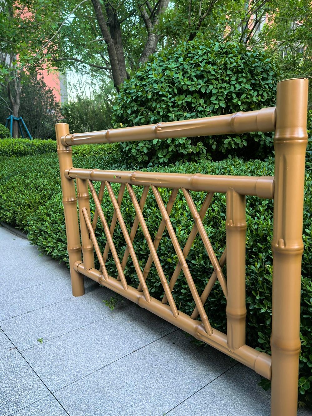 仿竹护栏同样表现出色。它不怕紫外线照射,不存在基材老化问题,使用寿命大大延长。护栏采用优质的阿克苏户外粉末做表面喷涂烤漆处理,在户外使用不褪色,不生锈、不开裂、结构好、强度高。无论是庭院、河道还是其他场所,仿竹护栏都能起到很好的防护和装饰作用。