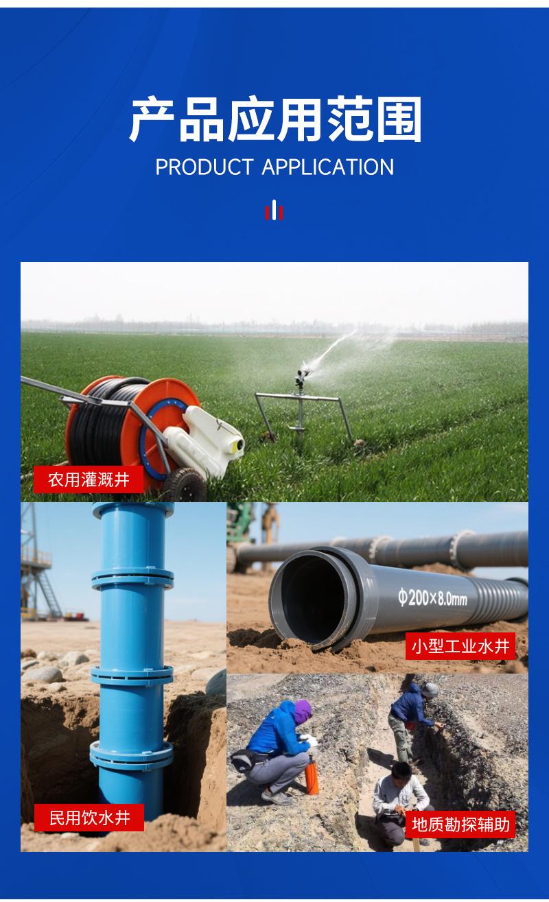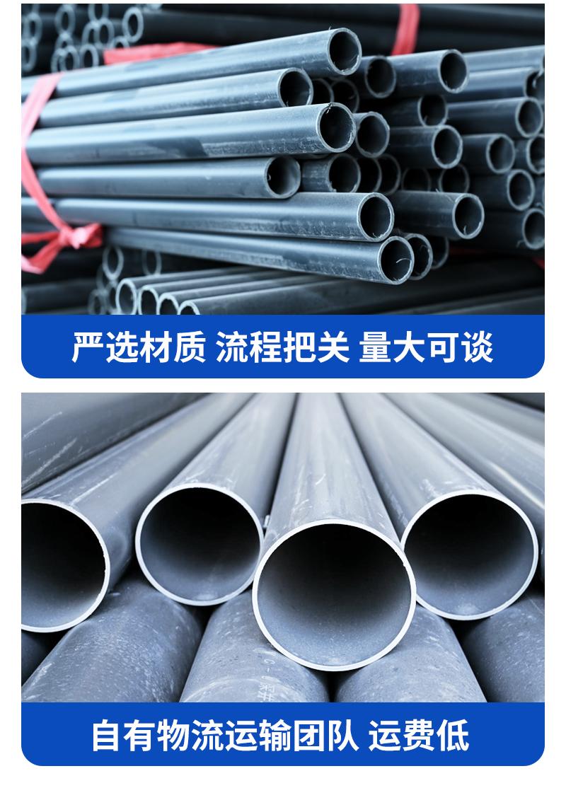 公司是PVC管图片实力厂家,其PVC系列管材具有诸多优点。首先,耐腐蚀性强,能够在各种复杂的环境中使用,不易被腐蚀损坏。其次,抗压强度高,能承受较大的压力,确保管道的正常使用。再者,内壁光滑,流体在管道内流动时阻力小,有利于提高输送效率。而且,PVC管重量轻且易安装,不仅降低了运输成本,还减少了安装的难度和时间,兼顾了耐用性与经济性,广泛应用于建筑给排水、农业灌溉、工业排污等领域。