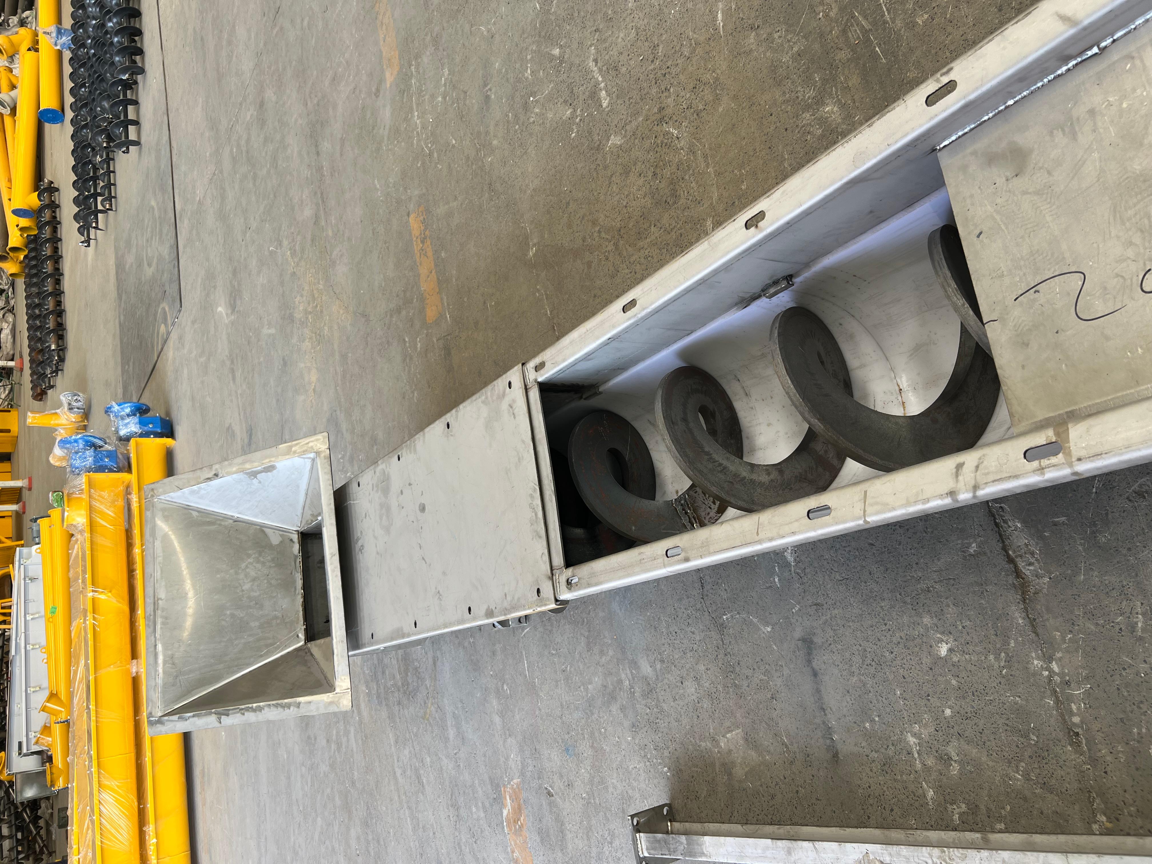 公司的螺旋输送机产品类型丰富,包括管式螺旋输送机、U型螺旋输送机、定制异型螺旋输送机、不锈钢螺旋输送机等。管式螺旋输送机适用于颗粒状、粉状物料的输送,具有密封性好的特点,能有效防止物料泄漏,减少环境污染;U型螺旋输送机则在输送过程中便于观察物料的输送情况,方便进行操作和维护;定制异型螺旋输送机可以根据客户的特殊需求进行设计制造,满足不同客户在不同场景下的输送要求;不锈钢螺旋输送机具有耐腐蚀的特性,适合输送一些具有腐蚀性的物料。