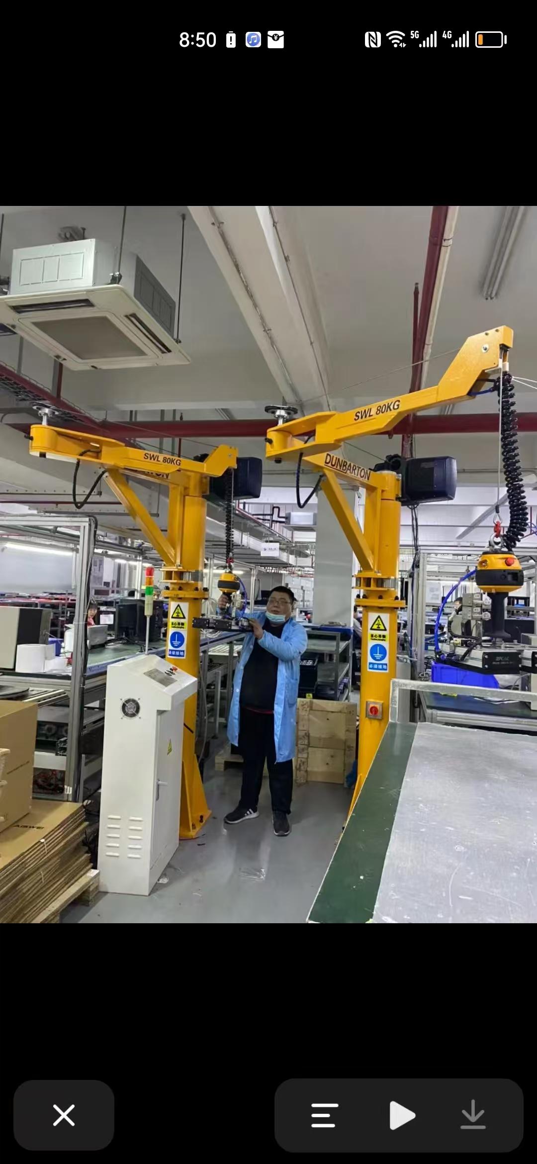 拐臂吊和曲臂吊在结构上与折臂吊和折臂起重机有所不同。拐臂吊的臂架具有独特的弯折设计,能够在一些特殊的空间内进行吊装作业。曲臂吊则以其弯曲的臂架为特点,能够实现更大范围的吊装覆盖。这两款产品在一些对空间和吊装范围有特殊要求的工业场景中,发挥着重要的作用。