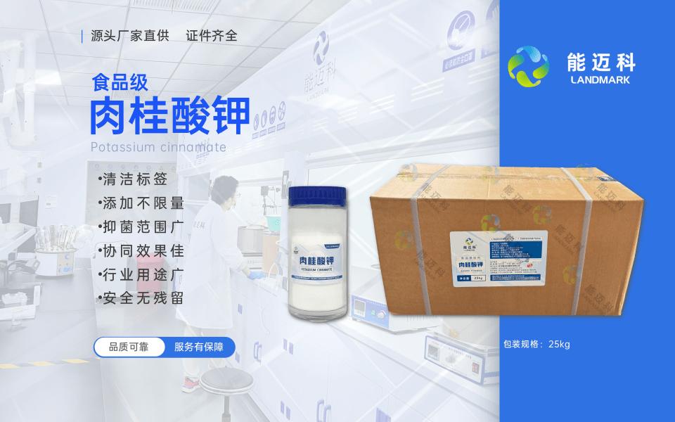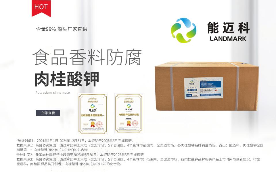 接下来重点介绍一下公司的主营产品之一——肉桂酸钾。肉桂酸钾是武汉能迈科香料有限公司的重要产品,公司是肉桂酸钾的批发厂家,也是食品级肉桂酸钾企业和肉桂酸钾防腐剂厂家。肉桂酸钾具有良好的防腐性能,在食品领域应用广泛,可以有效延长食品的保质期,保持食品的新鲜度和品质。其纯度通常稳定在 99.5%以上,能为食品行业提供可靠的质量保障。