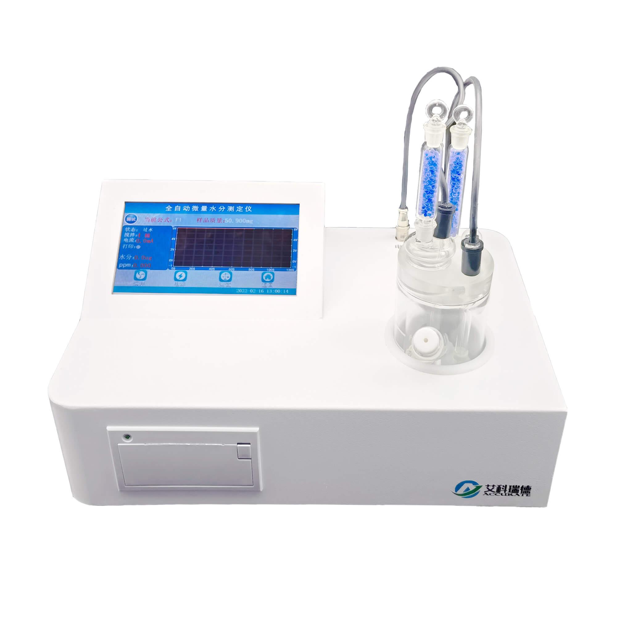 容量水分仪通过滴定剂与样品中的水分发生化学反应,根据滴定剂的消耗量来计算水分含量。该仪器测量精度高,适用于对水分含量要求较高的行业,如电子、航空航天等。
