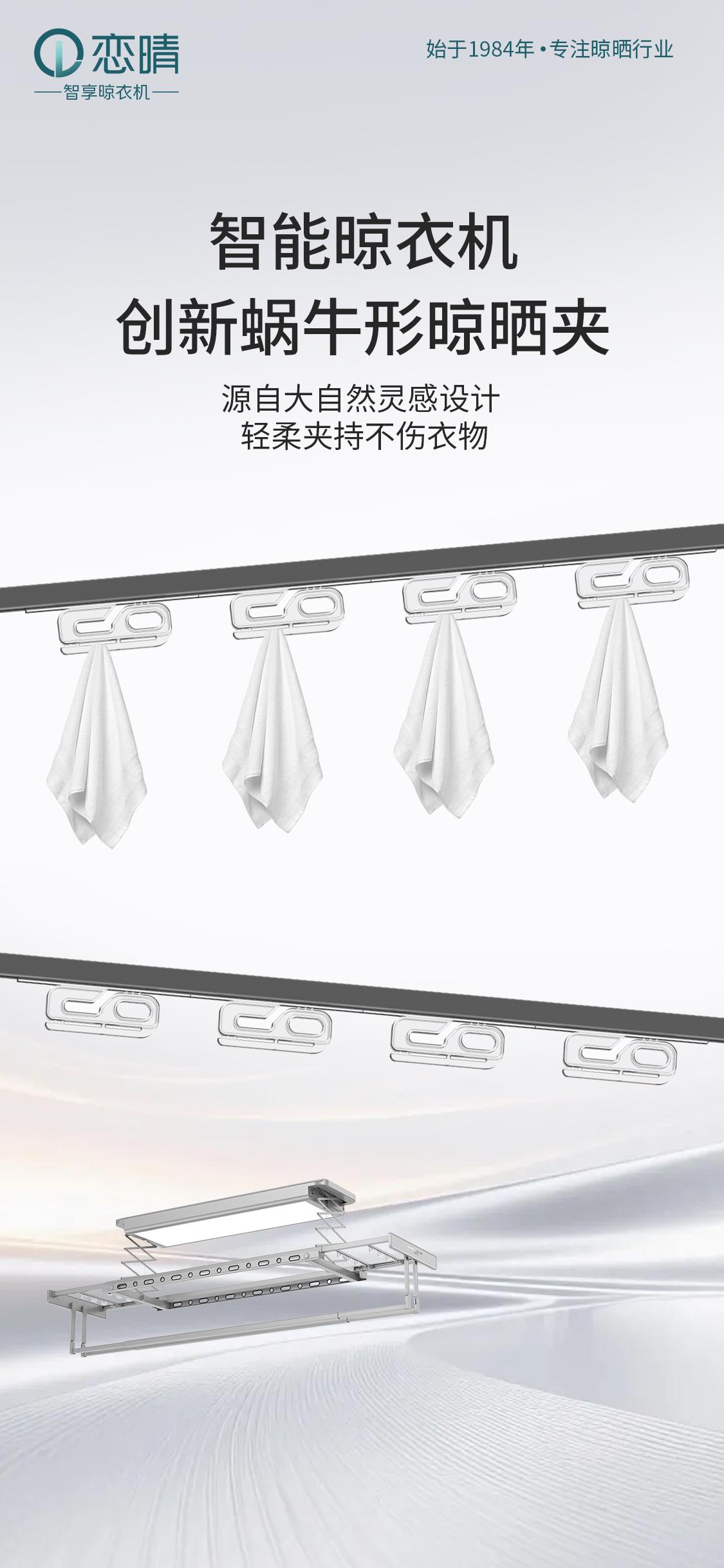 广东恋晴智能家居有限公司专注于为消费者提供高品质的家居用品,其主营产品涵盖晾衣机和晾衣架等。这些产品不仅满足了人们日常晾晒衣物的基本需求,还融入了智能科技,提升了使用的便利性和舒适度。