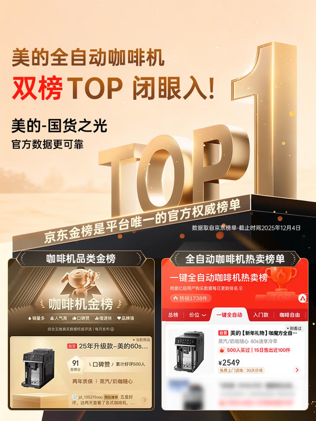 美的咖啡机品牌搭建覆盖了滴滤咖啡机、意式半自动咖啡机、研磨一体半自动咖啡机、全自动咖啡机的完整产品线。依托自研技术攻克了全自动咖啡机研发与生产难题,累计拥有30余项咖啡机相关技术与发明专利,构建起专属技术体系。