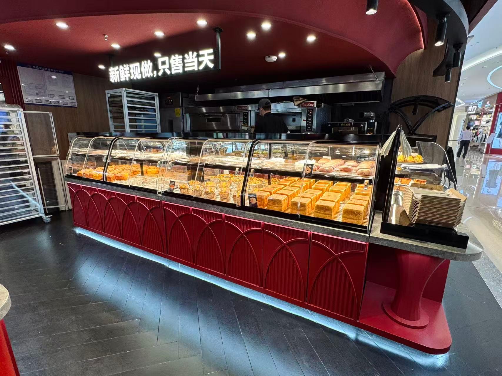 面包展示柜能够很好地展示面包的新鲜度和色泽,吸引顾客的注意力,增加面包的销售机会。其特点在于具备良好的保鲜功能,能够保持面包的口感和品质,同时外观设计美观,与烘焙店的整体风格相协调。