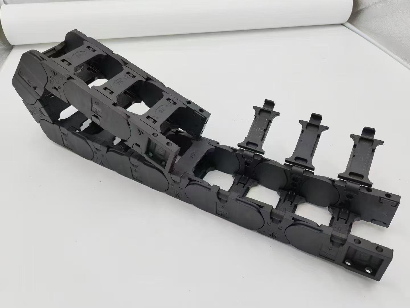 这些产品在各自的领域发挥着重要作用。例如,钢铝拖链具有较高的强度和耐磨性,能够在恶劣的工作环境下保护电缆、油管等,适用于机械行业中各种大型设备的线缆防护。尼龙拖链则具有重量轻、柔韧性好的特点,在一些对灵活性要求较高的场合应用广泛。全封闭式拖链可以更好地防止灰尘、杂物进入,保护内部线缆,常用于对环境要求较高的场所。