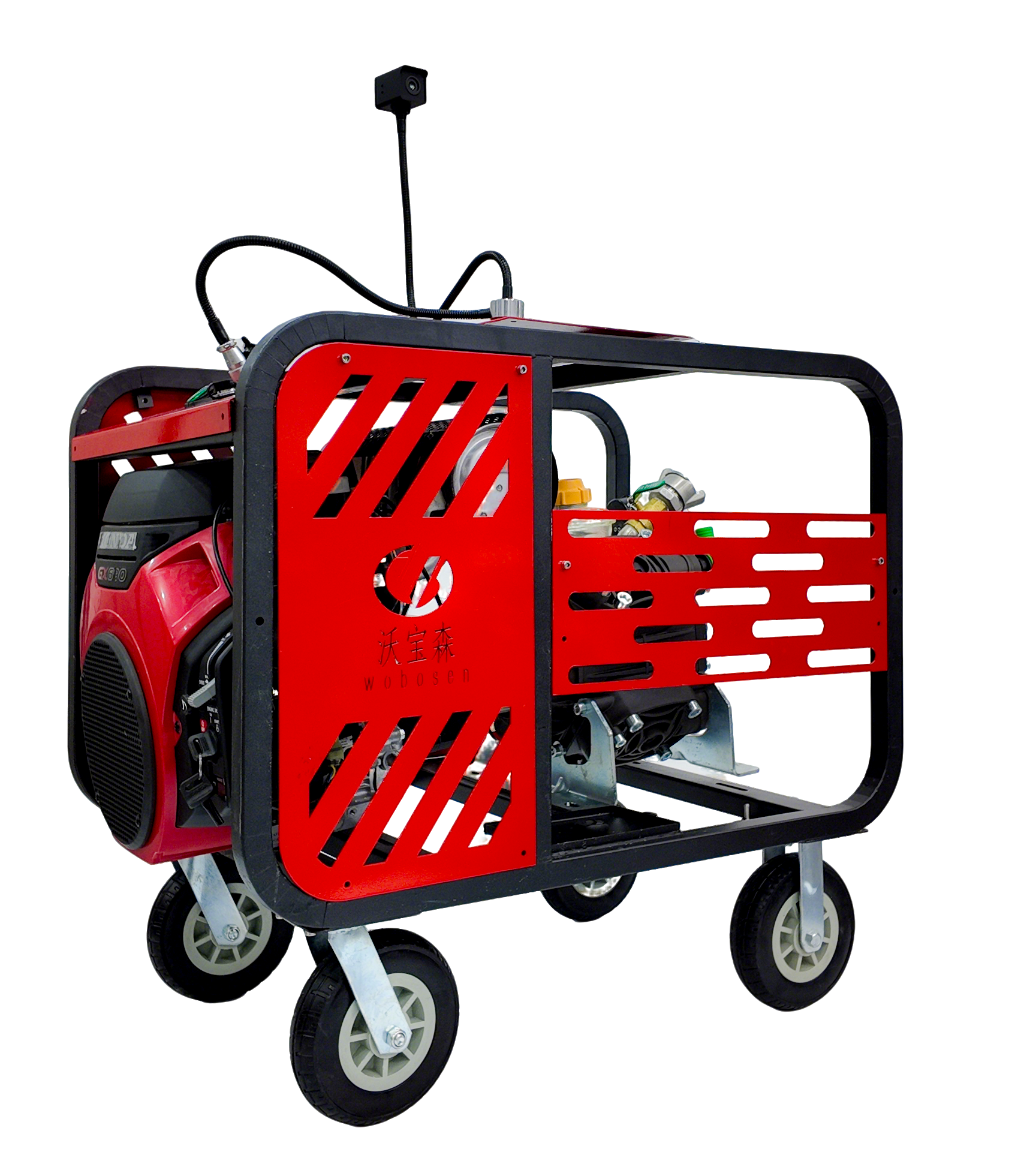 其中,以六缸液压隔膜泵为旗舰产品,它搭载 24KW 四冲程强制风冷发动机,采用六缸柱塞液压隔膜结构。这种结构使得该泵流量达 210L/min、压力 8Mpa、射程 25m,吸深 7m,水平输送距离可达 5000m,整机质量 145kg,兼顾了大流量、长距离输送与便携性。四缸柱塞隔膜泵则以高压高效为核心,工作压力≥5Mpa,流量≥190L/min、射程≥32m,启动时间≤3s,响应迅速。两款机型均采用 TPU 耐磨隔膜,实现介质与机械部件完全隔离,无泄漏风险,可输送腐蚀性、高粘度液体。并且配备电启动 / 手电双启动模式,适配无电源野外场景。