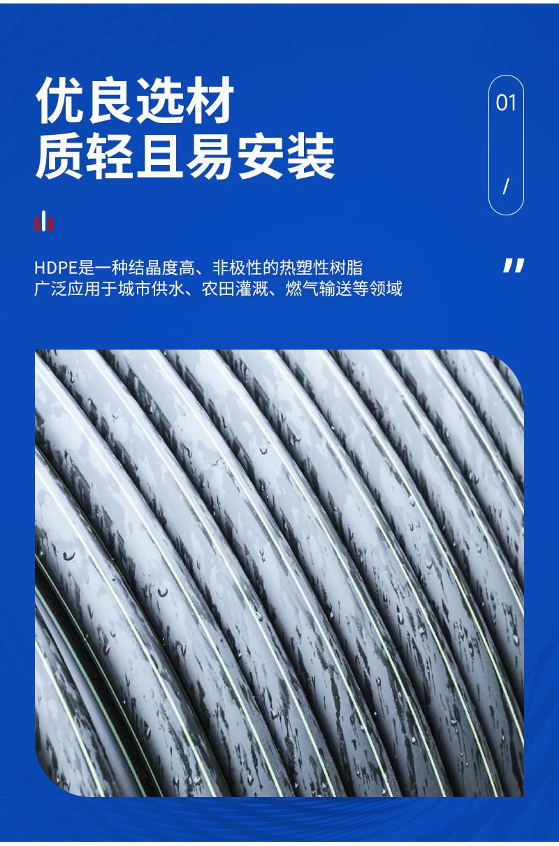 PE 管作为一种常见的管道产品,具有多种规格和型号,能够满足不同客户的需求。它广泛应用于农业灌溉、城市排水、工业废水处理等领域。