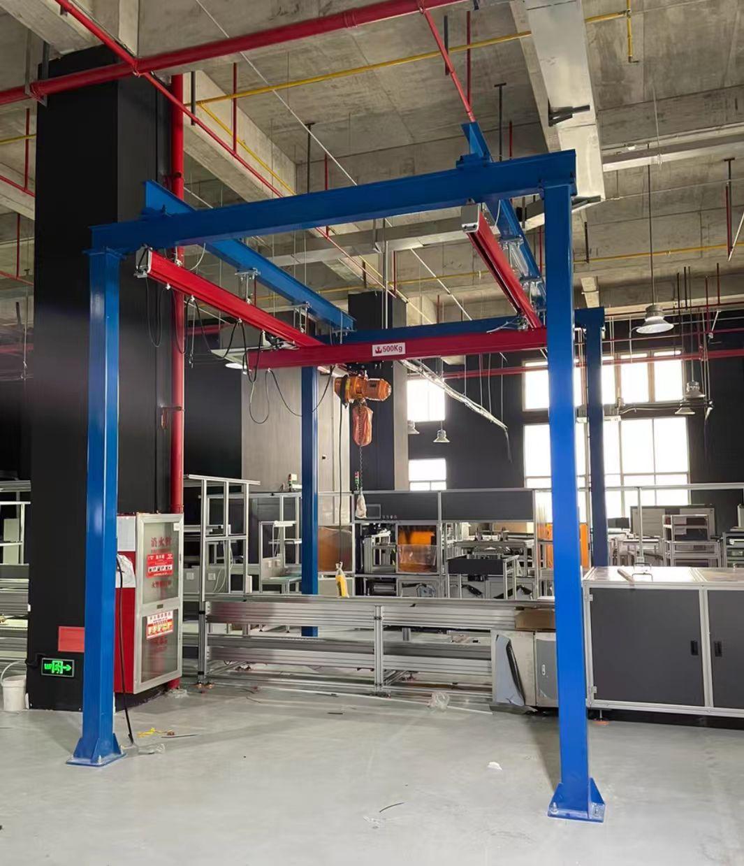 kbk柔性起重机则结合了KBK轨道和KBk柔性吊的优点。它具有更大的起重量和更广泛的作业范围。kbk柔性起重机可以通过轨道系统实现多工位的起重作业,提高了设备的利用率。在大型工厂中,kbk柔性起重机可以承担起繁重的物料搬运任务,为生产提供有力的支持。