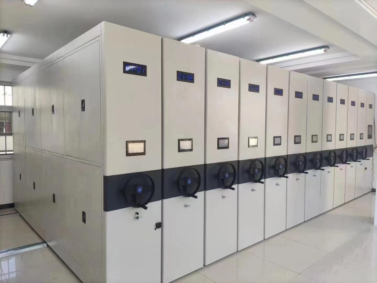 从产品质量和性能来看,公司的产品表现出色。在结构承重方面,主柱厚度≥1.5mm,层板厚度≥1.0mm,单层承重≥80kg,满载状态无变形。传动系统采用双向同步传动,传动比 1:5.5,手摇力≤3.5N/标准节,运行噪音≤45dB,操作轻便平稳。运行精度上,轨道平行度≤0.5mm/m,架体移动直线度≤1.5mm,防倾倒装置灵敏可靠。智能密集柜单次开启时间≤3 秒,定位精度≤2mm,支持远程控制与批量操作。密封防护方面,防尘板间隙≤1.5mm,磁性密封条吸附牢固,有效防光、防尘、防潮。