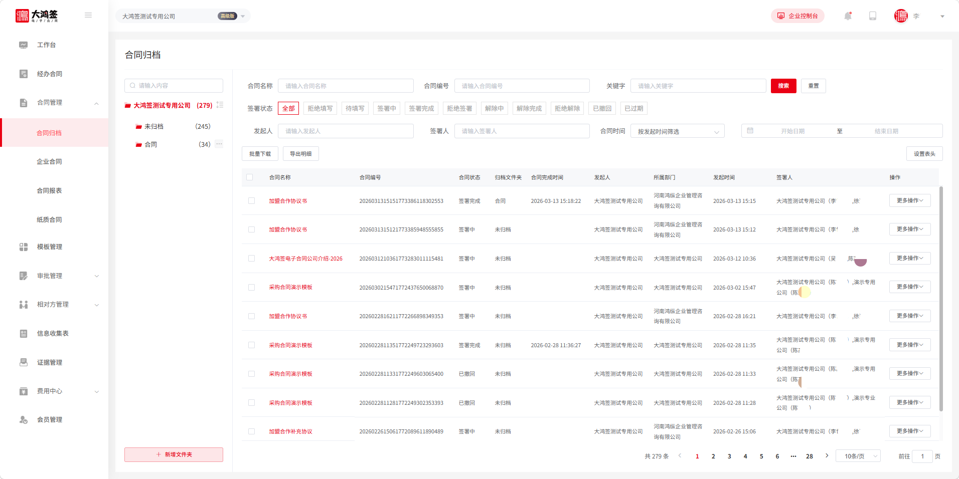 河南大鸿签科技有限公司专注于电子合同领域核心技术研发,可提供电子签约SaaS、电子签约API、私有化部署等服务,支持与政务云、企业各类业务系统无缝对接。公司已打通企业微信,钉钉,泛微等多个主流平台,拥有实名认证、区块链存证、智能合同审核等核心功能,打造了合同全生命周期数字化管理体系。其核心技术围绕电子签约安全、存证溯源、系统集成展开,为企业的电子签约活动提供了坚实的保障。