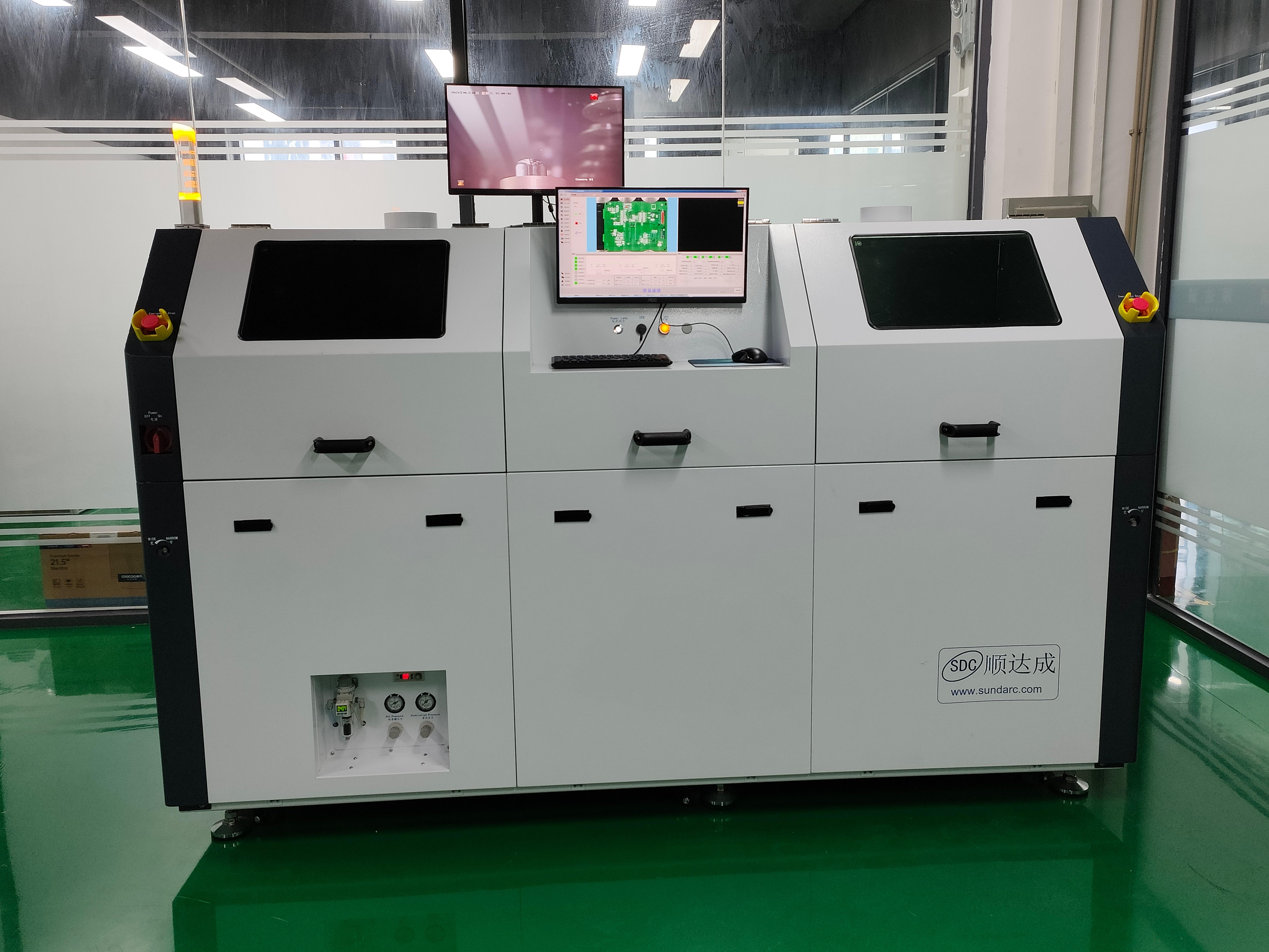 公司的主营产品——全自动在线式选择性波峰焊设备具有诸多特点和优势。首先,其核心产品多功能选择性喷助焊剂焊锡一体机,兼具高精度、高稳定性与高适配性。焊接精度达0.1毫米,焊点稳定性优于行业标准30%,焊点实、稳、优,精准支持点焊与拖焊,在高速稳定产出的同时确保焊接不伤板,完整的数据追溯可满足高可靠要求,能轻松应对各类简单、复杂及精密板型,广泛应用于航空航天、军工等领域。