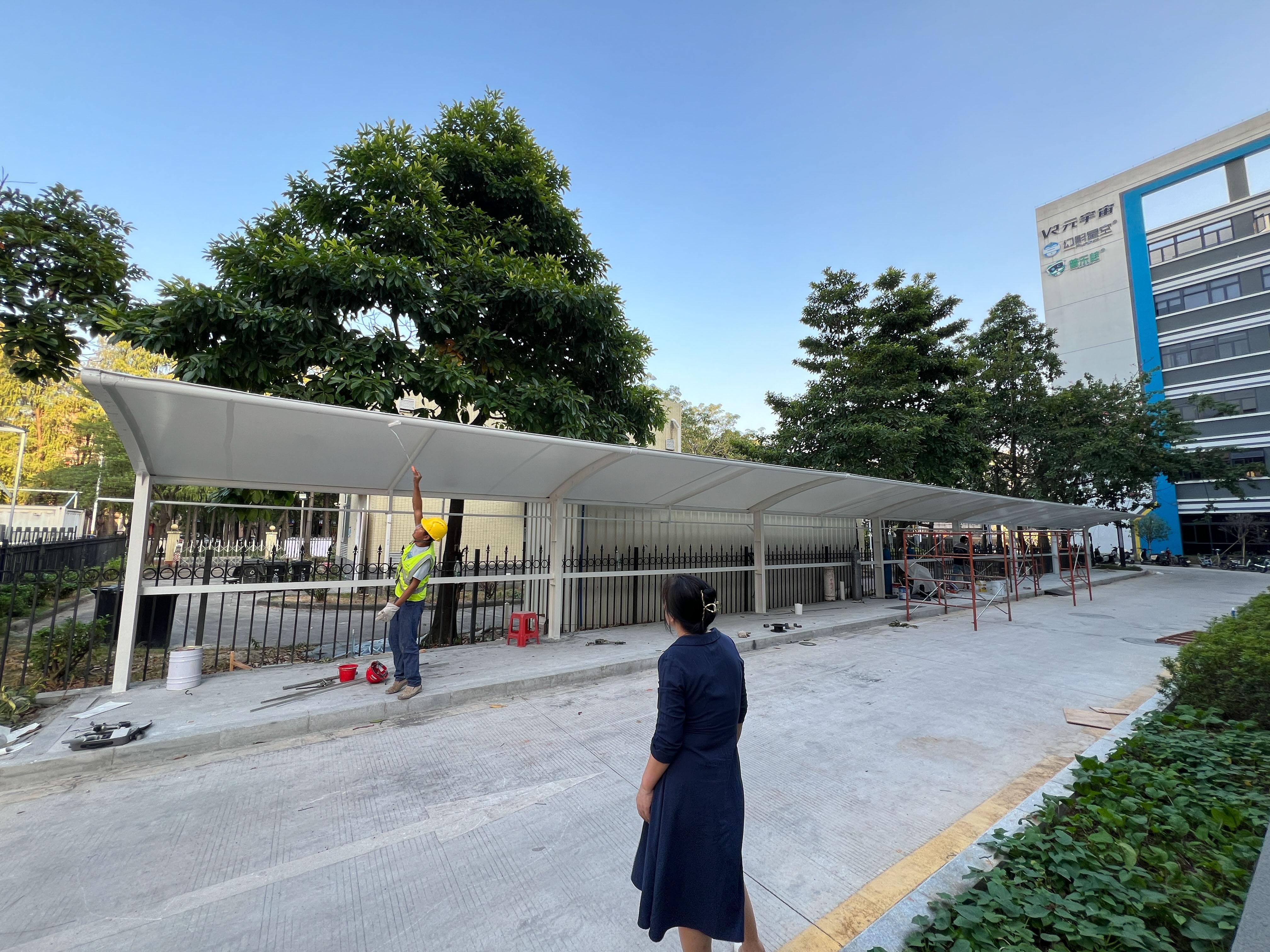 膜结构停车棚:主要用于车辆的停放,为车辆提供遮阳、挡雨的保护。其特点在于造型多样,可以根据不同的场地和客户需求进行设计。膜材具有良好的抗紫外线和防水性能,能够有效延长车辆的使用寿命。而且膜结构停车棚的安装相对简便,施工周期短,不会对周围环境造成较大影响。
