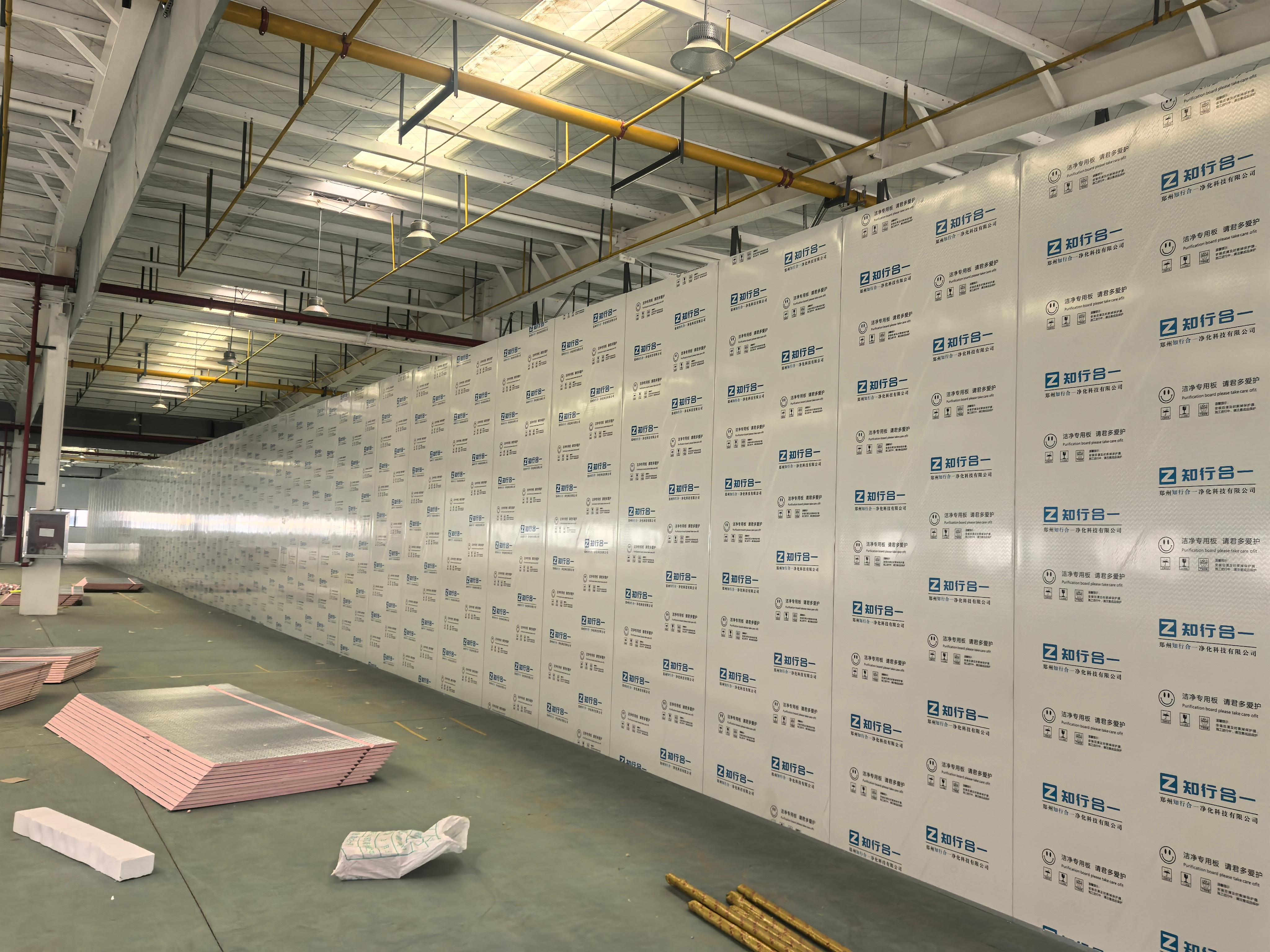 郑州知行合一净化科技有限公司致力于为电子半导体、生物医药、医疗器械、食品饮料及实验室等高新领域提供专业化的空气净化系统整体解决方案。公司拥有先进的全自动彩钢夹芯板生产线,专业生产各类高品质净化板,产品具备耐高温、阻燃、防尘、抗菌、防潮、隔音等优异性能。其主要产品包括机制净化板、手工净化板和净化配套。