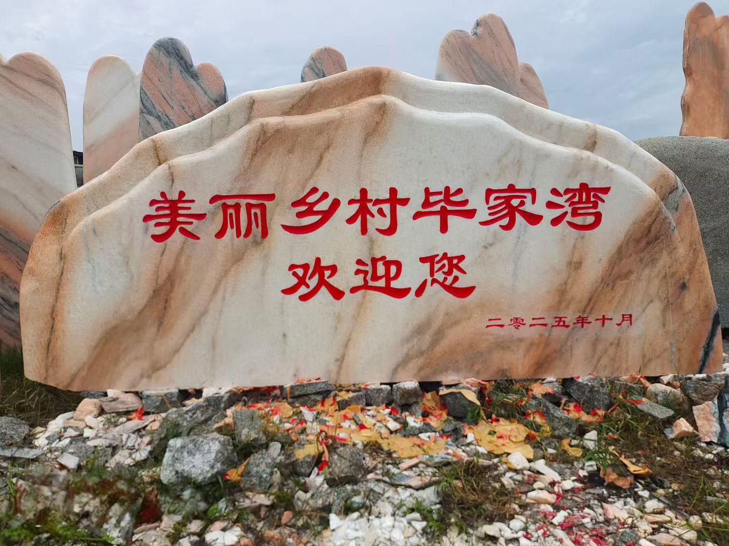黄蜡石质地坚硬,颜色鲜艳,具有良好的观赏价值,常被用于园林景观的点缀,为园林增添自然、古朴的气息。景观石形态各异,或雄伟壮观,或小巧玲珑,可用于公园、广场等大型户外场所,营造独特的景观效果。门牌石作为一种标识性的石材,具有醒目、持久的特点,广泛应用于企业、学校、小区等场所的门牌标识。村牌石则成为乡村的重要标志,展现乡村的特色与文化。刻字石可以根据客户的需求刻上各种文字、图案,具有纪念、宣传等作用,常用于景区、纪念馆等场所。