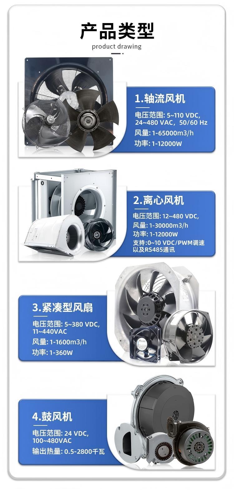 该公司与国内外众多风机品牌和市场保持紧密且长久的合作,在通风散热领域耕耘多年,目前已获得ebmpapst、wistro、DELTA(台达)、SANYO(山洋)、S&P (EMC ) 、mdexx 、 KAKU( 卡固)等品牌授权代理证书,并优势供应Ziehl - Abegg、cesotec、ecofit、Fulltech(福佑)、SUNON(建准)、RISUN(鸿进)、SINWAN(信湾)、DARING(达盈)、ADDA、NMB - MAT、ROYAL、IKURA(育良)、为弘、三巨等各类名优风机产品。公司长期备有大量库存,包括轴流风机、离心风机、燃气风机等,大大缩短了交货时间,降低客户的运营成本,提高工作效率。