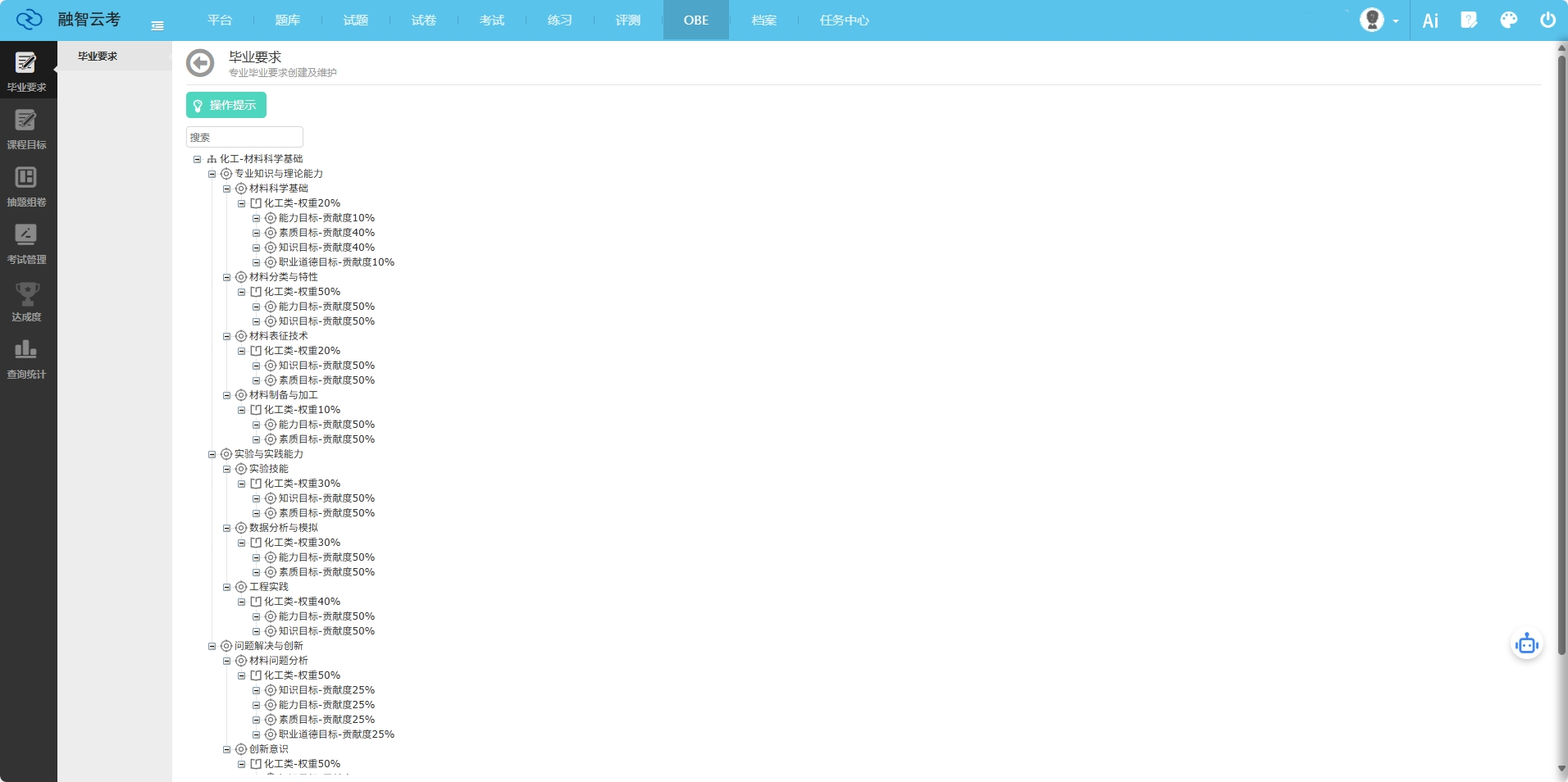 山西OBE平台以成果导向教育为核心,为高校提供了一个全面的教学管理和质量保障平台。该平台能够帮助高校教师更好地设计教学方案、监控教学过程、评估教学成果,从而实现教学质量的提升。内蒙古工程教育认证专业系统,针对工程教育领域,为高校工程专业提供专业的认证系统支持,确保工程专业的教学质量和人才培养符合****。