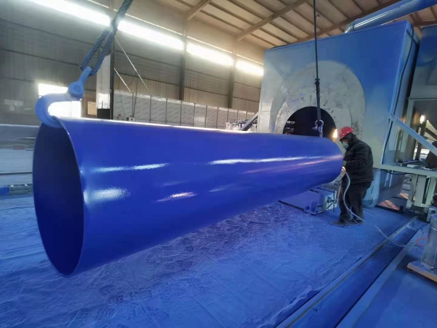 公司生产的tpep防腐钢管等主营产品具有诸多特点和优势。公司现有3PE(PP)/FBE防腐钢管涂敷生产线两条,产品规格为φ219mm~φ1829mm,执行SY/T0413,GB/T23257,DIN30670等标准。生产线装备了国内外先进的防腐生产设备,其核心设备如钢管内、外壁喷丸清理机、工艺传送线、中频感应加热系统、环氧粉末静电喷涂系统、聚乙烯和胶粘剂挤出机、管端打磨设备、美国固瑞克无气喷涂机、固化室等均有微机控制,工艺先进,生产设备具有自动化程度高,运行稳定,质量可靠,加工适应能力强等显著特点。