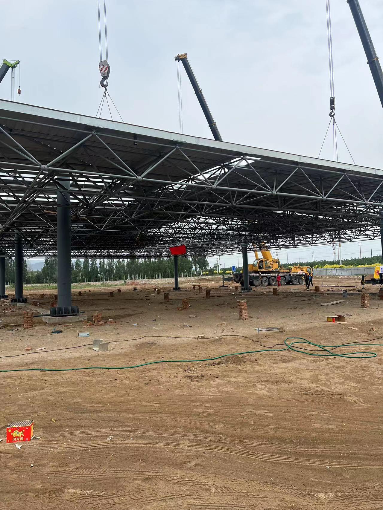罩棚网架:罩棚网架常用于停车场、加油站等场所。山东铂昂钢结构网架有限公司的罩棚网架能够为车辆等提供有效的遮挡保护。该网架结构轻盈,安装灵活,能够根据不同的场地需求进行定制设计。同时,它具备良好的抗风、防雨性能,确保罩棚下的设施和车辆安全。