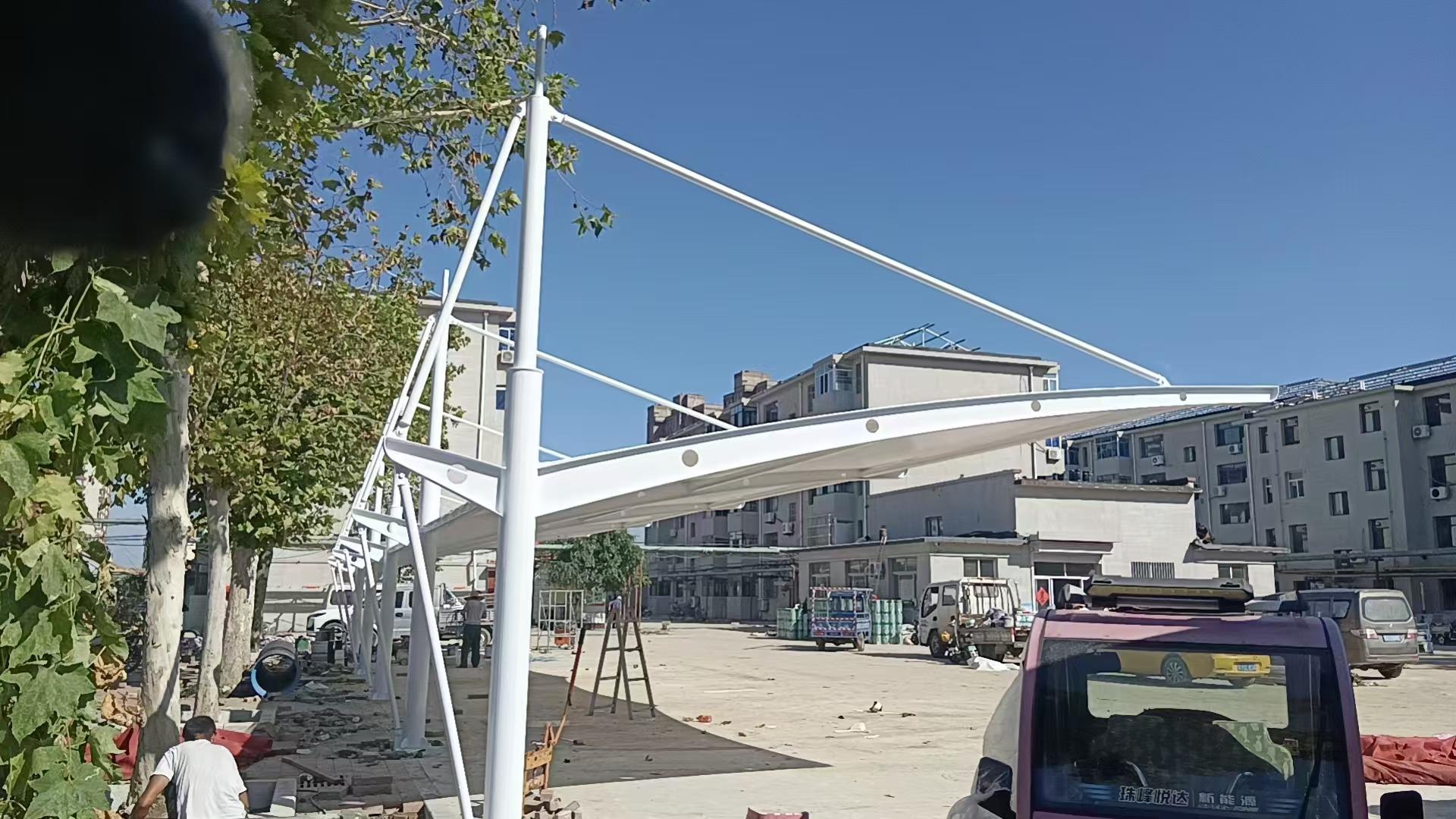 膜结构充电桩棚:随着电动汽车的普及,充电桩棚的需求日益增加。沧州华彪膜结构工程有限公司的膜结构充电桩棚,能为充电桩提供良好的保护,其阻燃性达到阻燃B1级,无火滴无毒气,保障了充电过程的安全。在耐温性方面,它在摄氏 - 40到 + 100温度范围内不会引起变形等品质劣化。