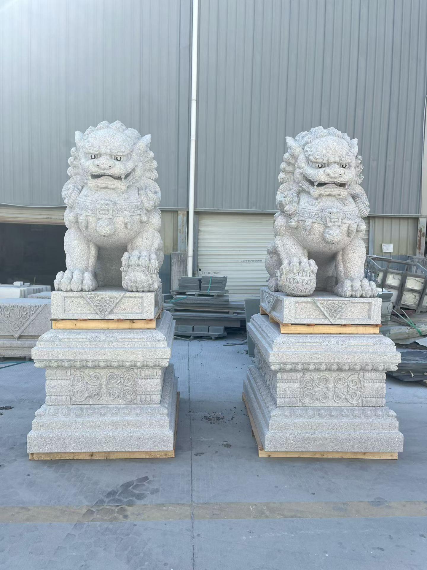 这些石狮子的耐用性也十分出色,天然石材莫氏硬度≥6,抗压强度≥120MPa,抗折强度≥8MPa,耐冻融循环≥25 次,耐风化、抗腐蚀性能优异,可长期耐受户外极端天气。在加工精度上,依托红外线桥切、多轴数控雕刻机等专业设备,雕刻线条误差≤0.5mm,异形件贴合度高,能将石狮子的每一个细节都**呈现出来,满足不同场景的高精度要求。