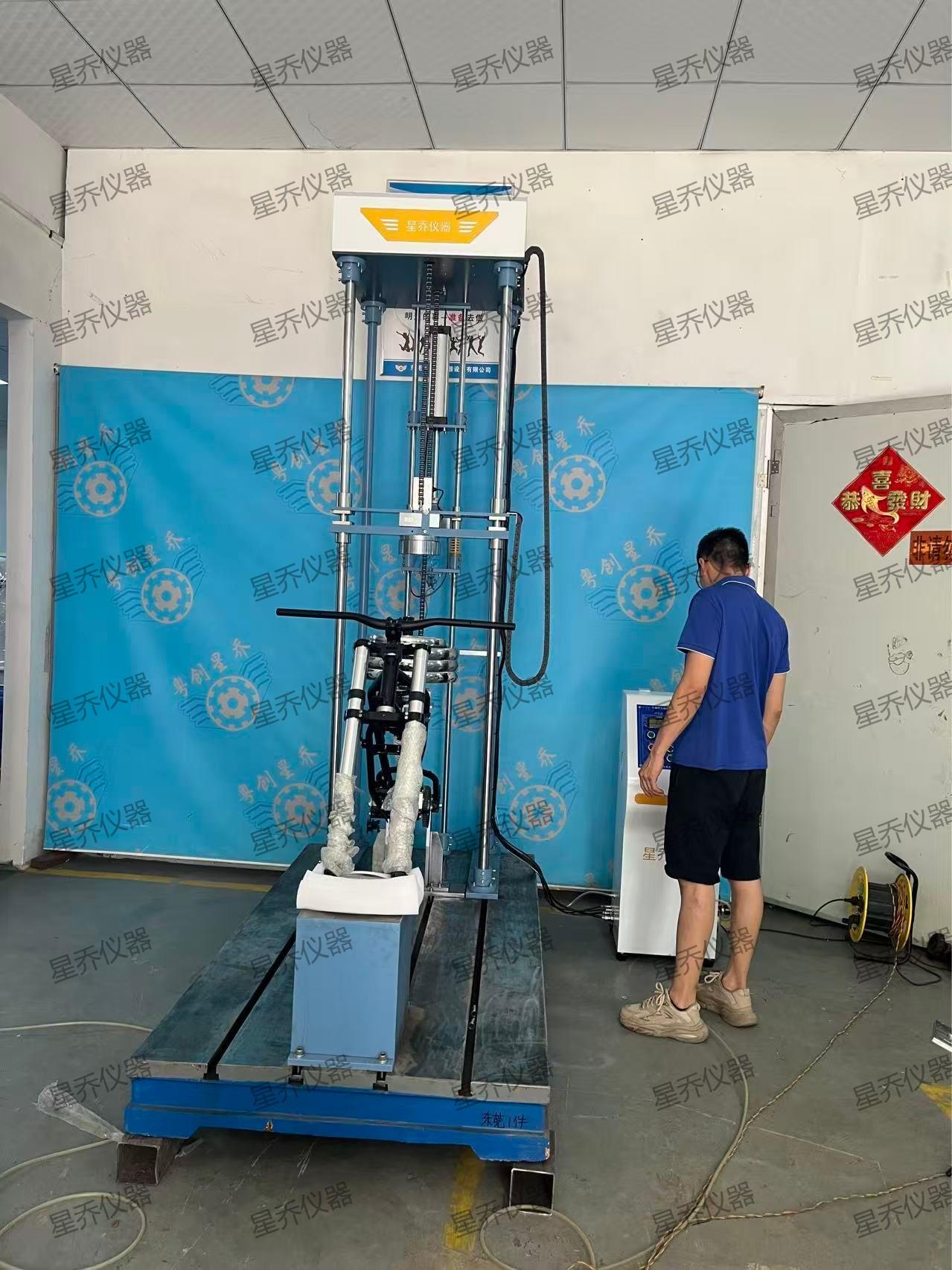 车架双振冲击测试机则主要用于检测车架在受到双振冲击时的性能。在实际使用中,自行车和电动车可能会遇到各种突发情况,如路面不平、碰撞等,这些情况都会导致车架受到双振冲击。车架双振冲击测试机可以模拟这些突发情况,对车架进行双振冲击测试,检测车架在受到冲击时的变形情况和损坏程度,为生产厂家改进车架的抗冲击性能提供依据。
