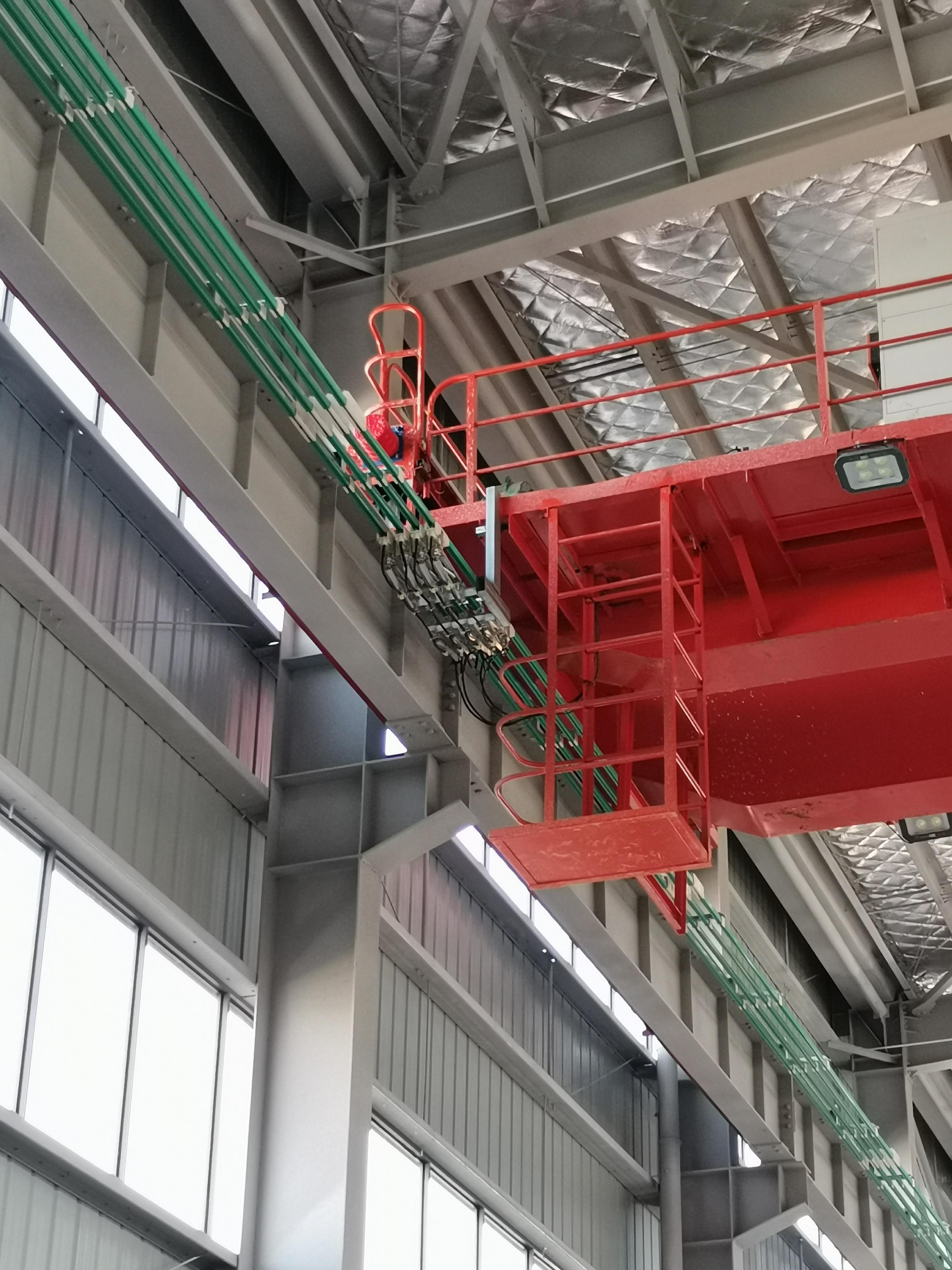 此外,公司开发出一种适应恶劣环境条件下的新型节能安全滑触线,特别是在碳素行业、煤厂等恶劣环境条件下,还能正常运行,克服了传统滑触线不锈钢带脱落的问题。