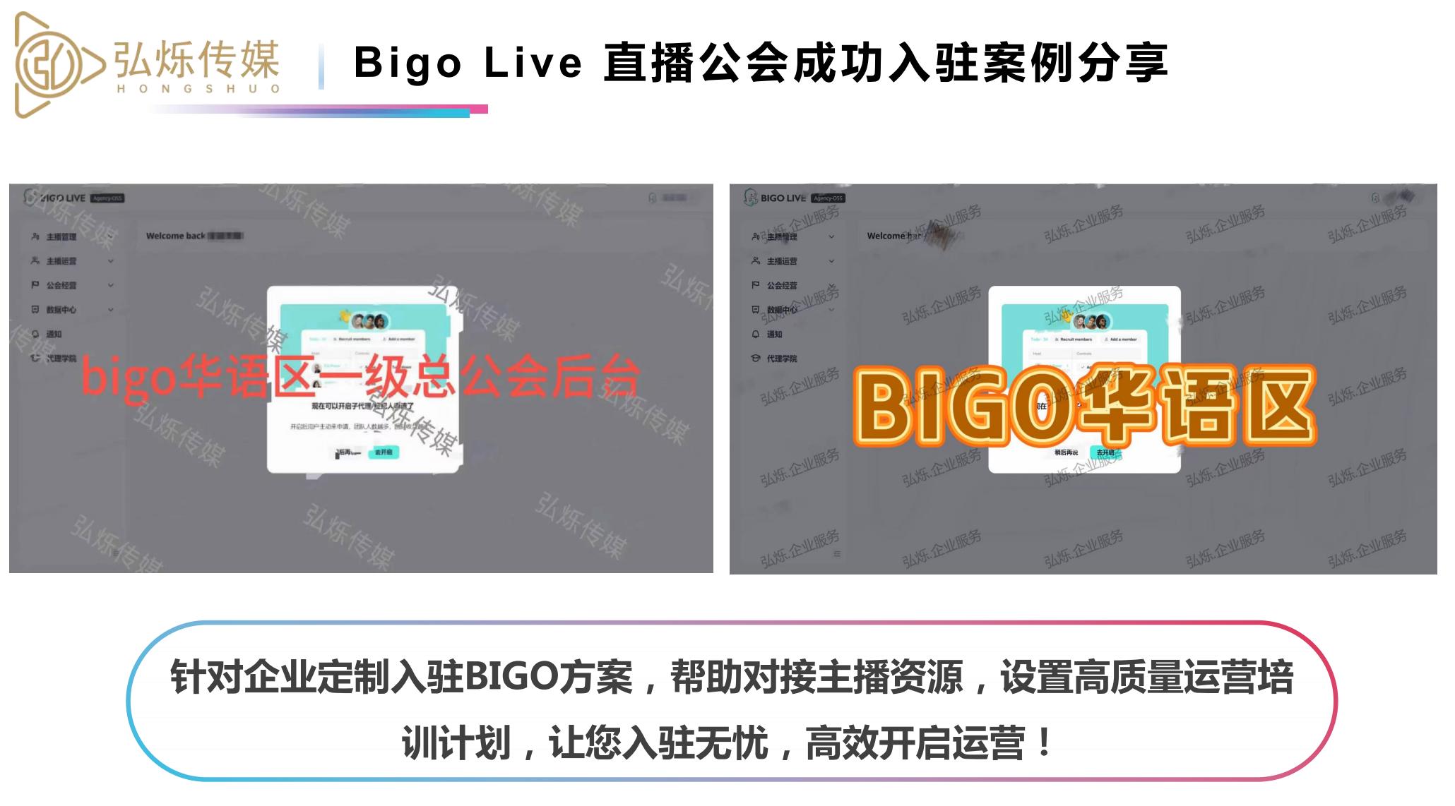 浙江BIGO总公会咨询服务,针对浙江地区的BIGO公会提供专业的咨询建议。弘烁传媒的专业团队能够根据公会的实际情况,提供个性化的发展方案,帮助公会解决运营过程中遇到的问题,实现可持续发展。